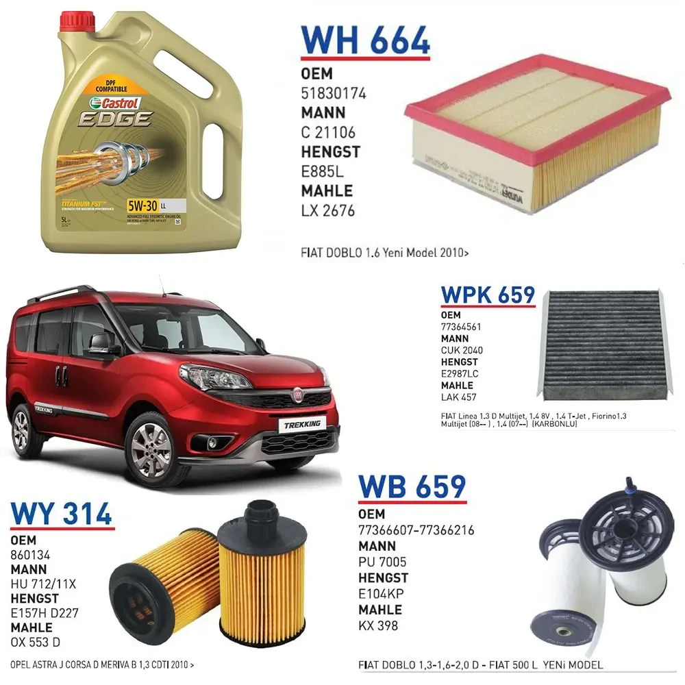 2010 VE ÜSTÜ FİAT DOBLO 1.6 MULTİJET EURO 6 70KW 90HP YAĞ BAKIM SETİ