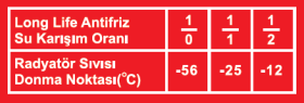 Ürün saf olarak kullanıldığında -56°C ' e kadar koruma sağlar. Seyreltme oranlarını etiket üzerinde görebilirsiniz.