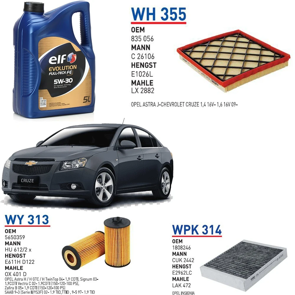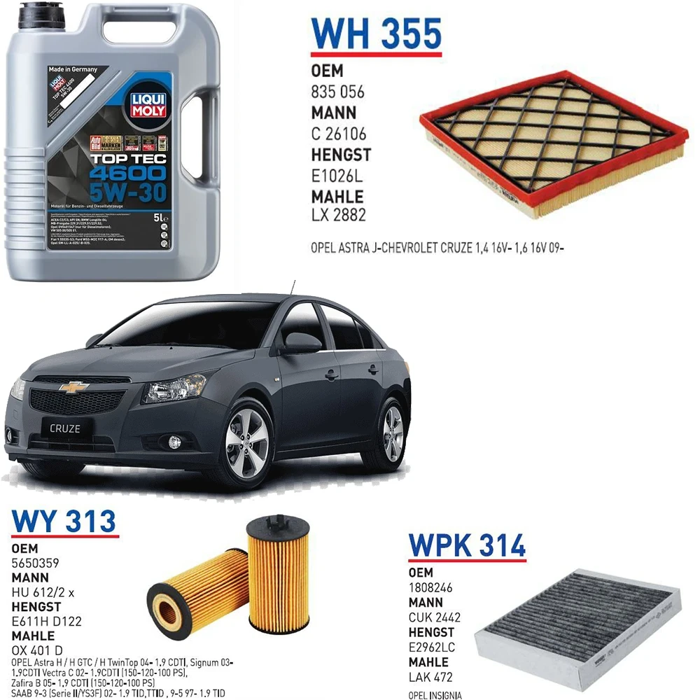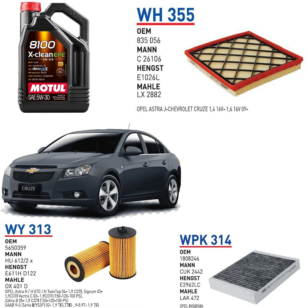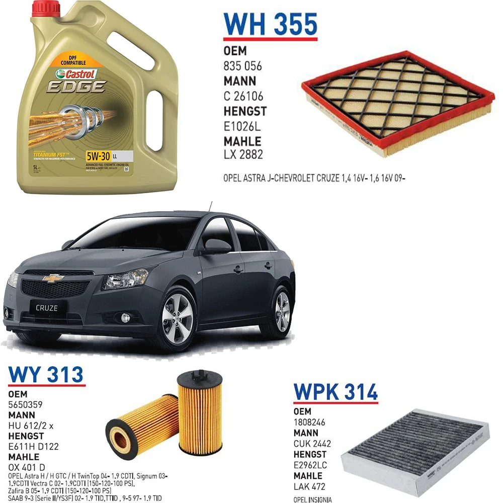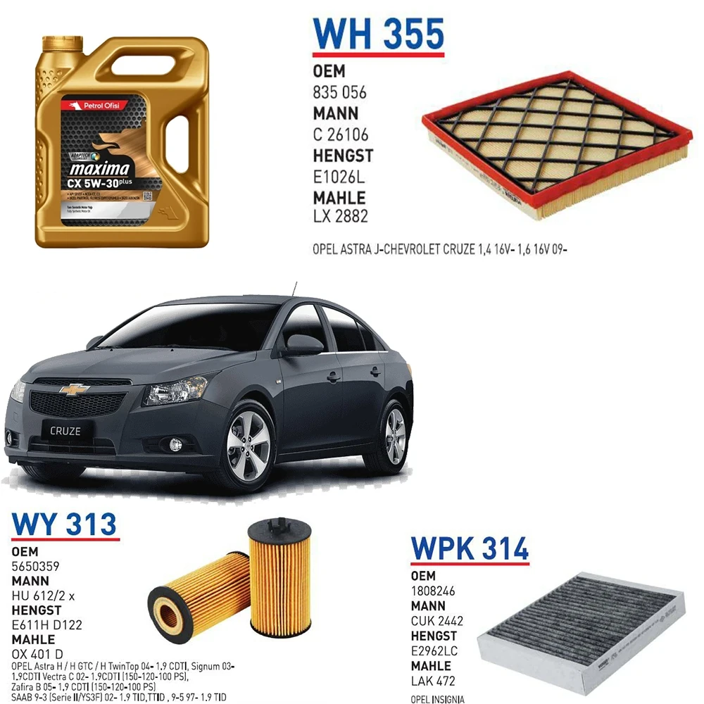 CHEVROLET CRUZE 1.6 MOTOR 124 HP YAĞ BAKIM SETİ