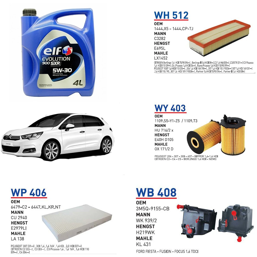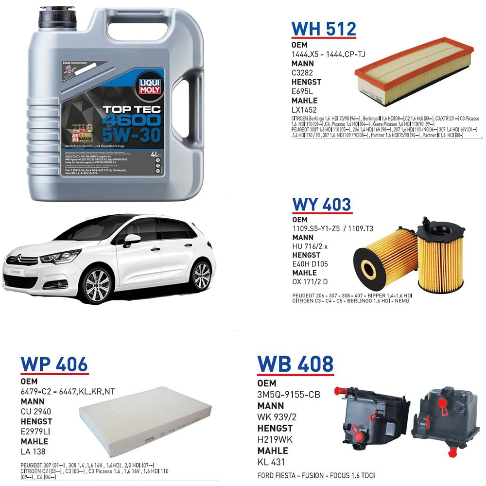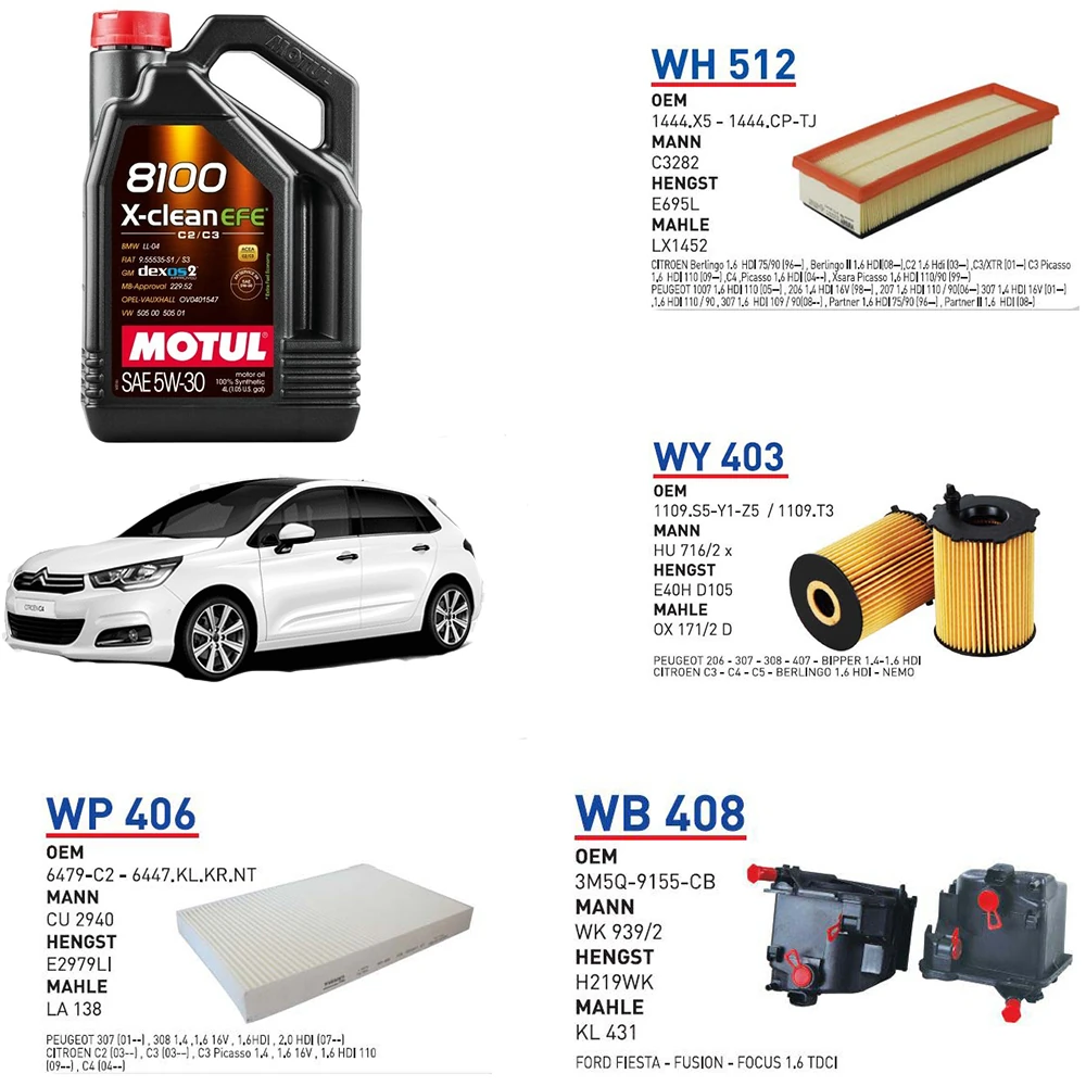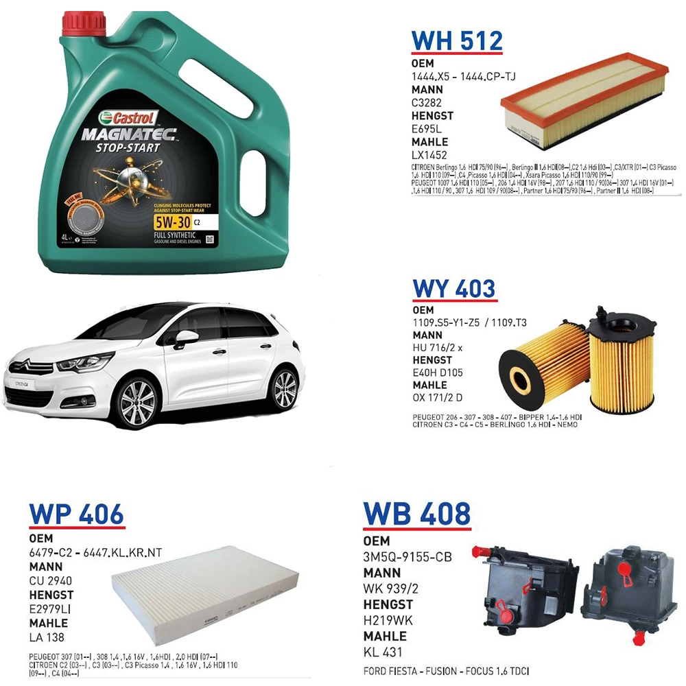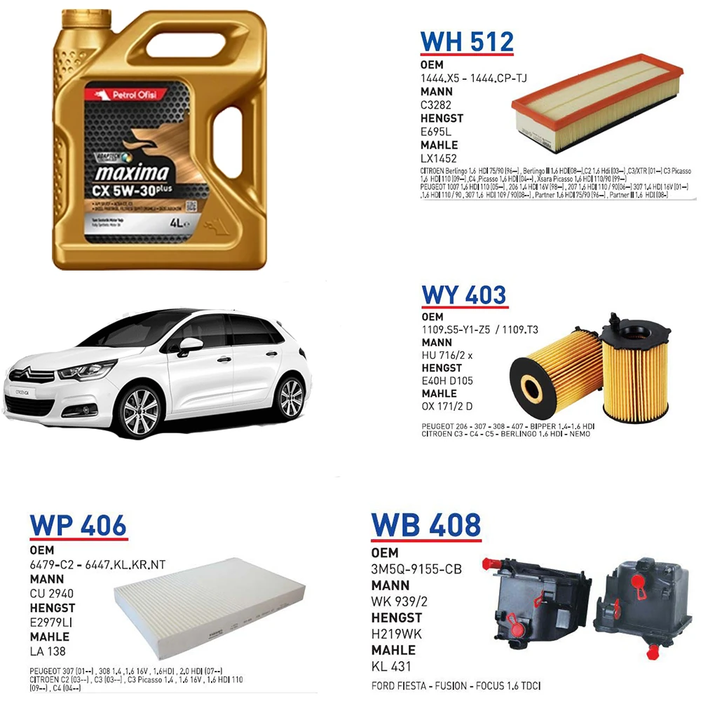 CITROEN C4 1.6 HDi 110 - kw 80 - 109 hp YAĞ BAKIM SETİ