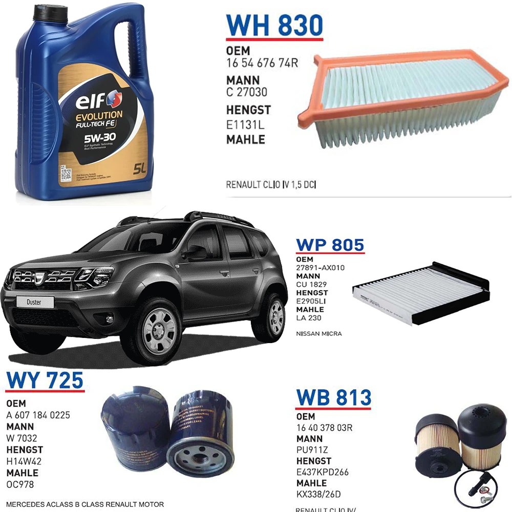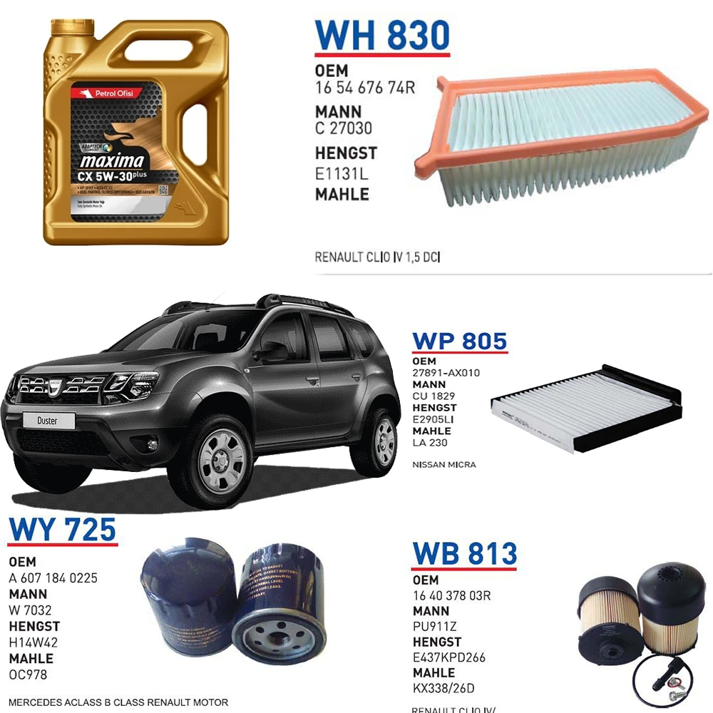DACİA DUSTER 1.5 DCİ 80 KW 110 HP START STOPLU 08-13 → 01-18 YAĞ BAKIM SETİ