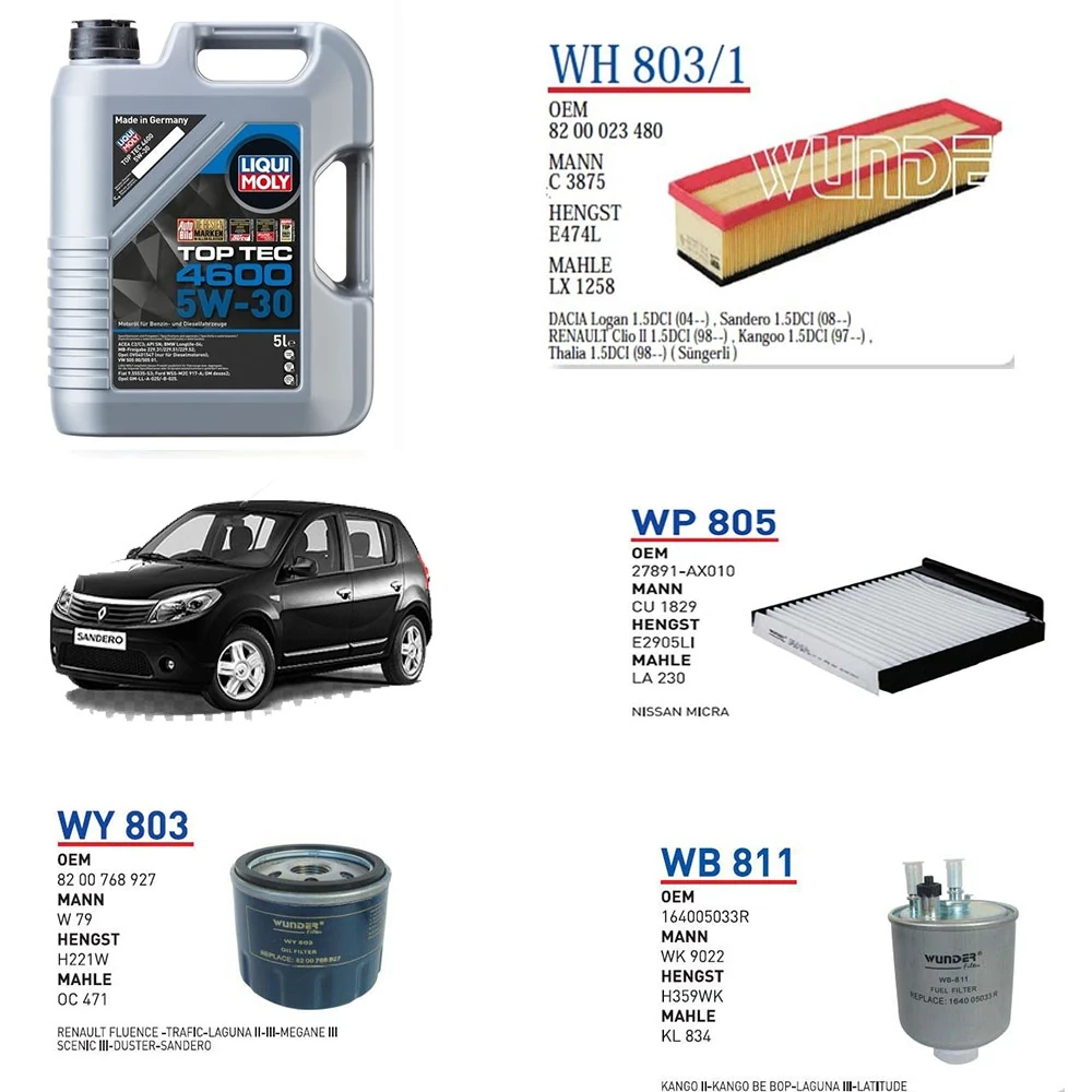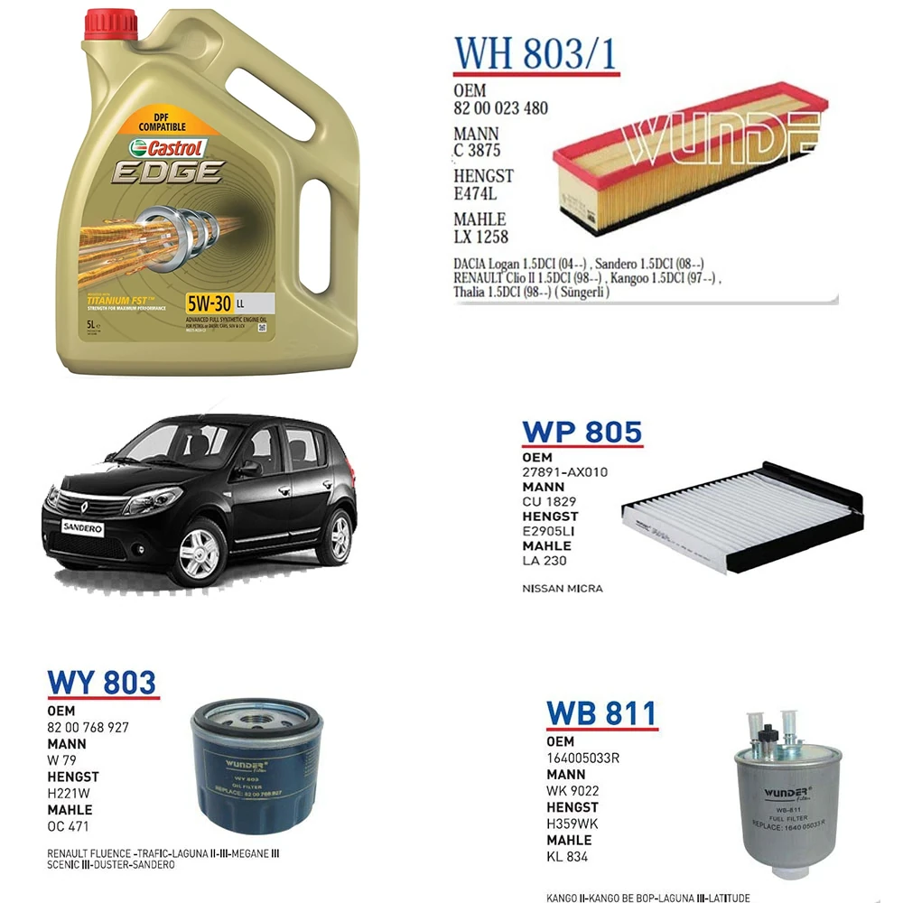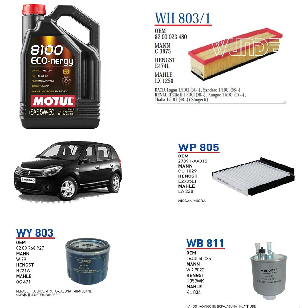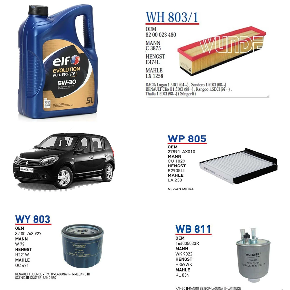 DACİA SANDERO STEPWAY 1.5 DCİ MOTOR KODU K9K 790/792 50KW 68HP YAĞ BAKIM SETİ