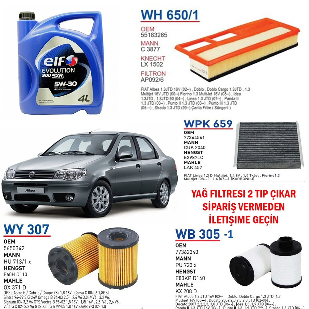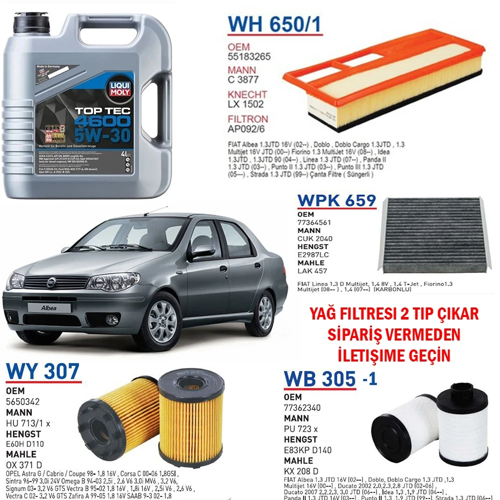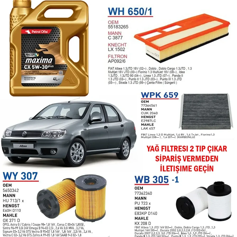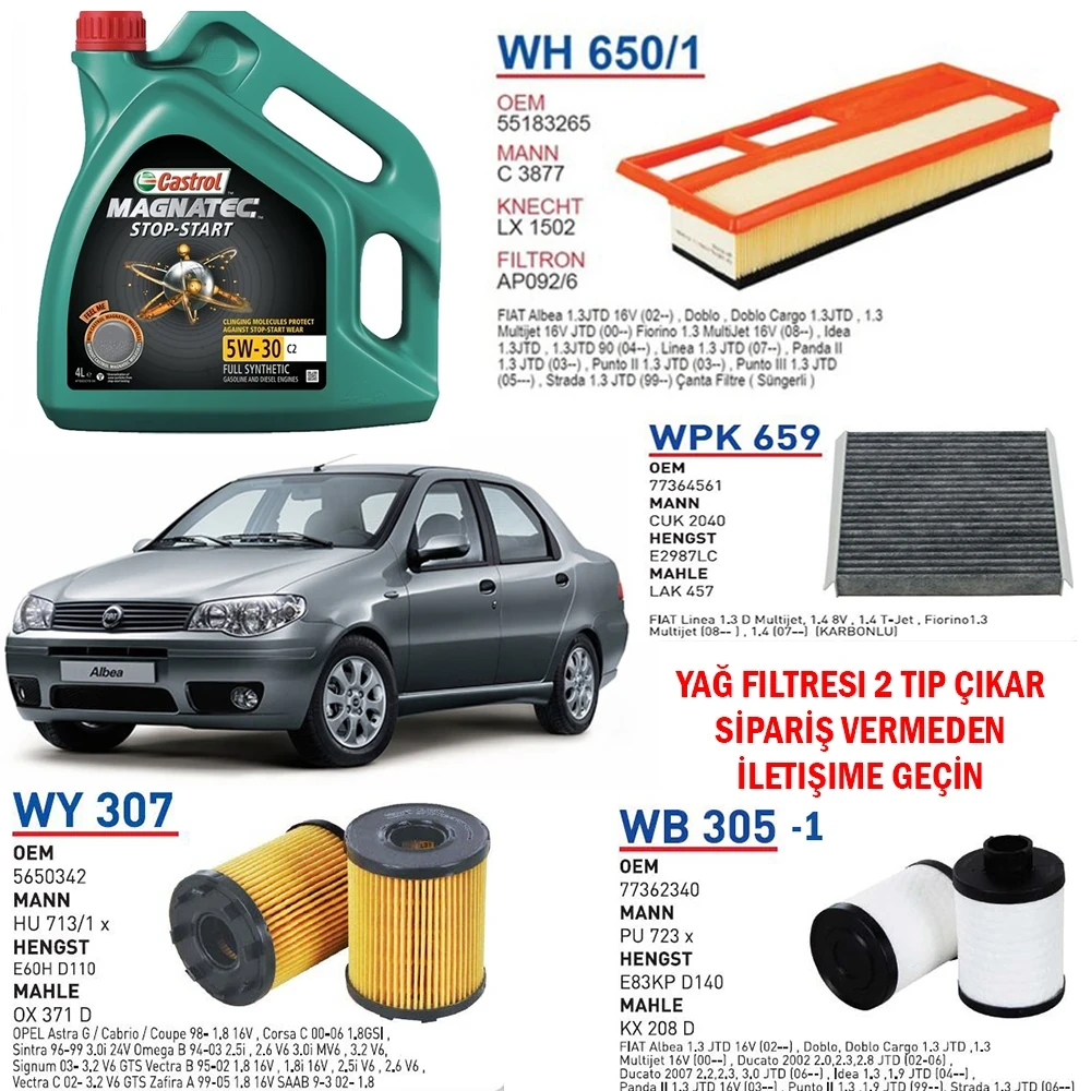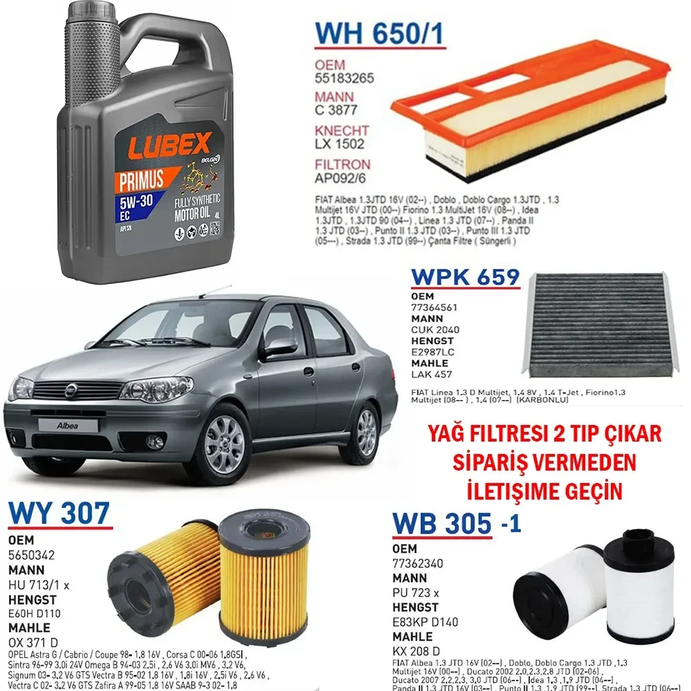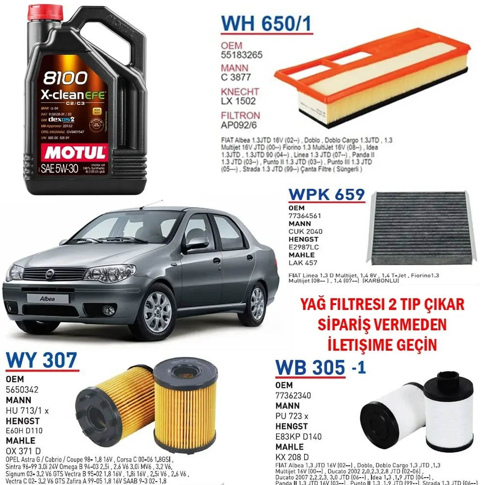 FİAT ALBEA 1.3 MULTİJET EURO 4 MOTOR YAĞ BAKIM SETİ