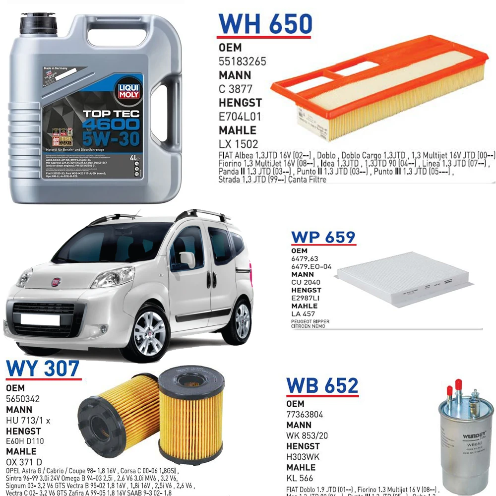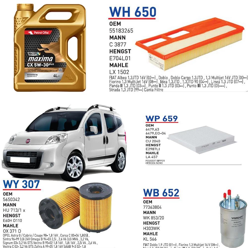 Fiat Fiorino 1.3 MultiJet 16V 75 HP Motor Yağ Bakım Seti