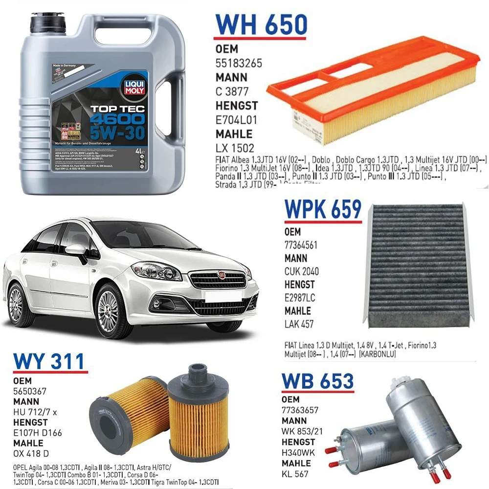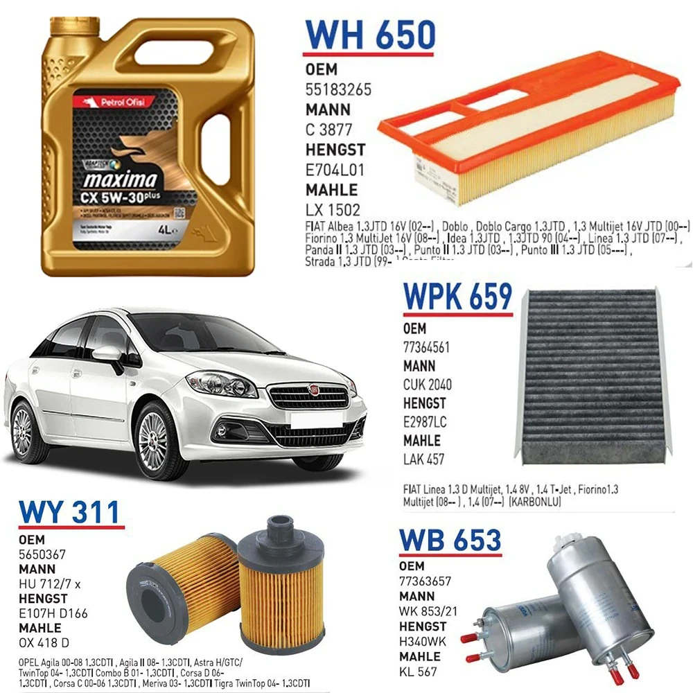 FİAT LİNEA 1.3 MULTİJET EURO 4 MOTOR YAĞ BAKIM SETİ