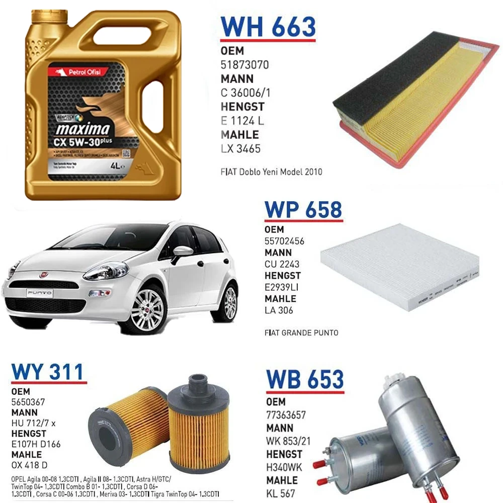 FİAT PUNTO 1.3 MULTİJET EURO 5 MOTOR YAĞ BAKIM SETİ