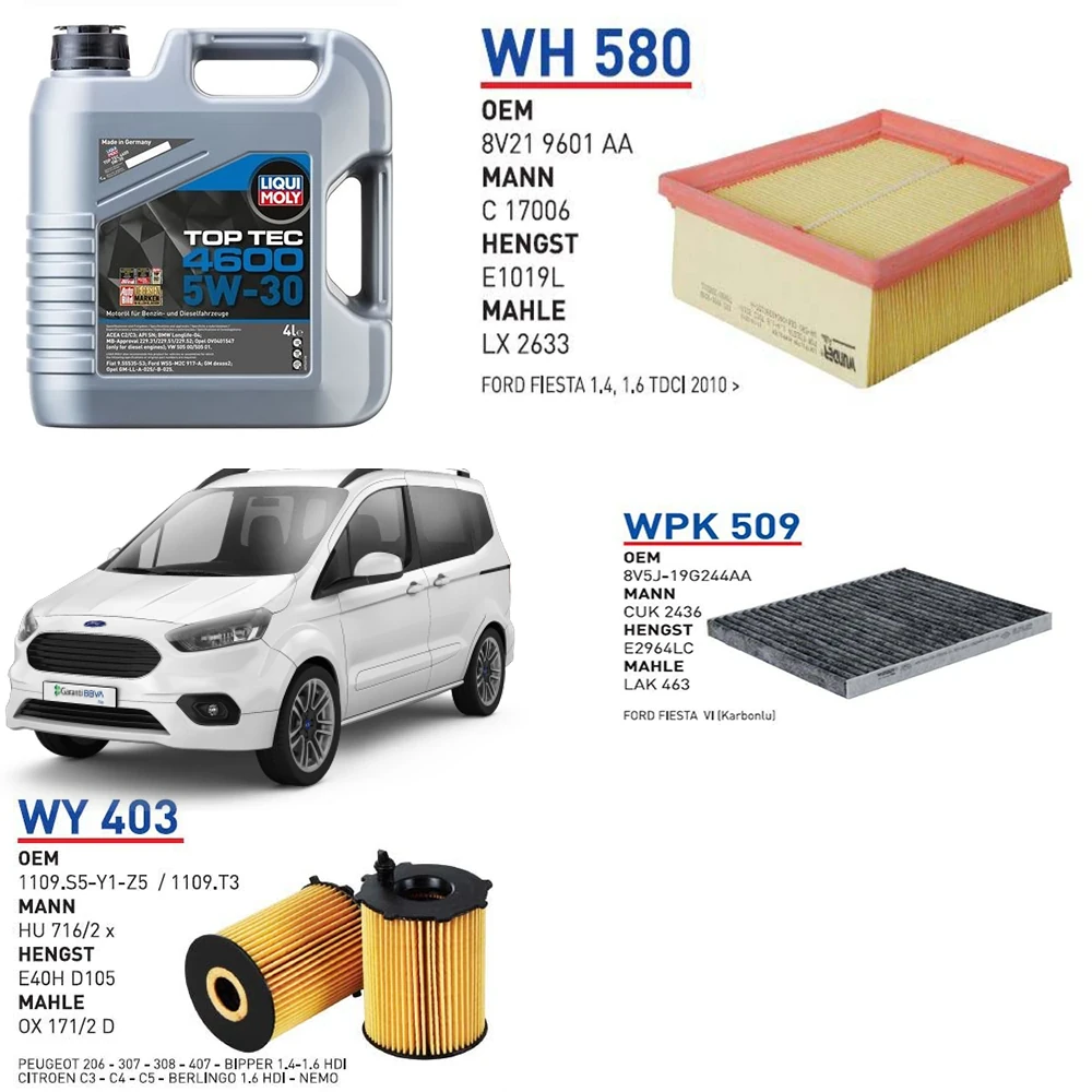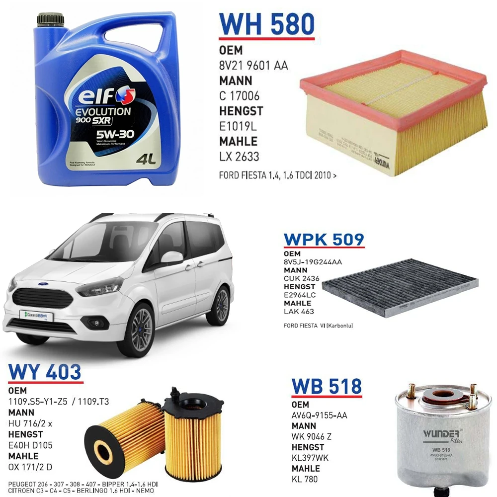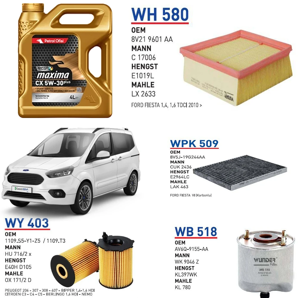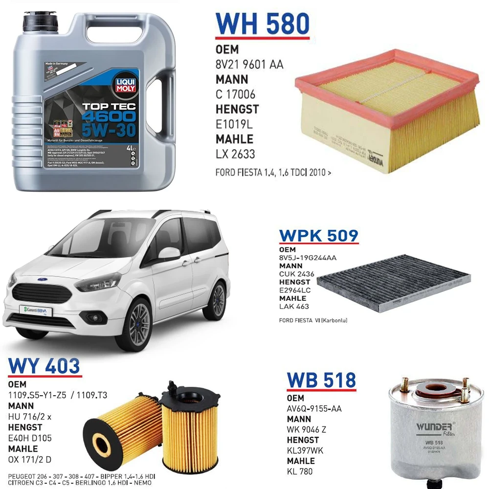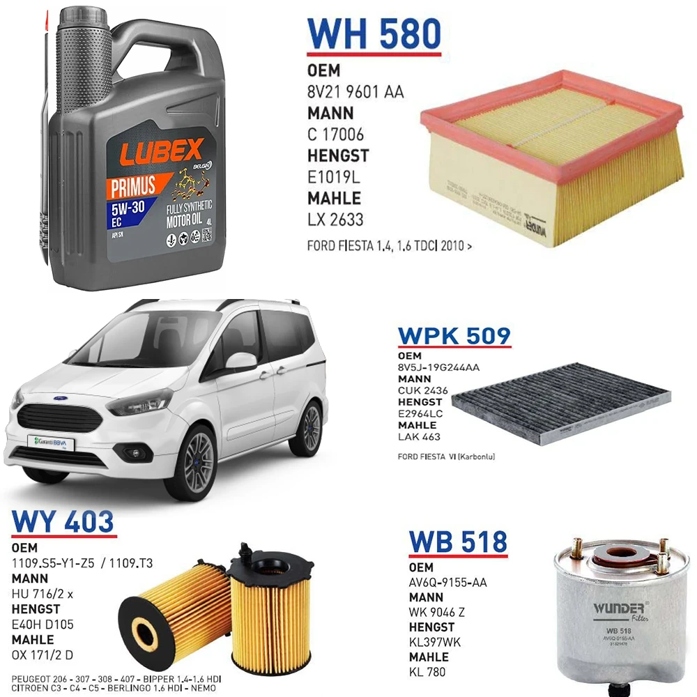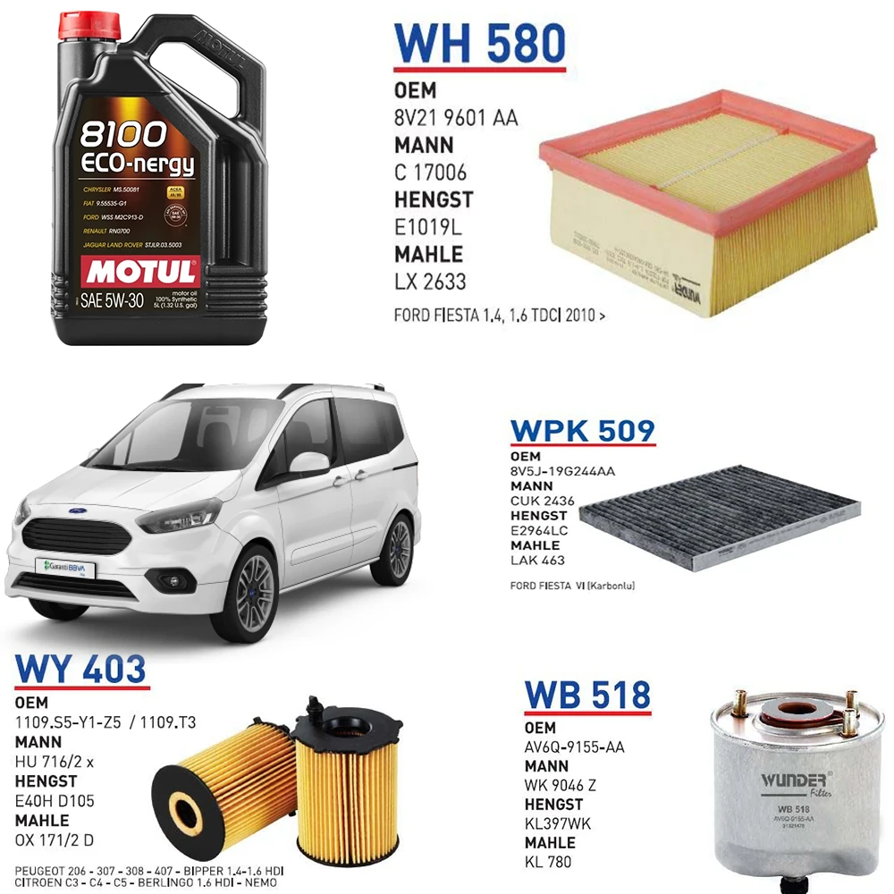FORD TOURNEO COURİER EURO 5 1.6 TDCİ 95 HP YAĞ BAKIM SETİ
