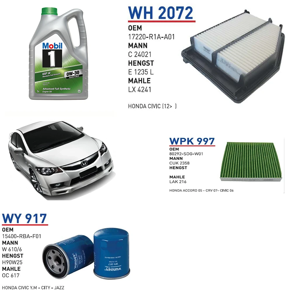 HONDA CİVİC 1.6 İ-VTEC 125 HP 01/12 → 12/12 YAĞ BAKIM SETİ