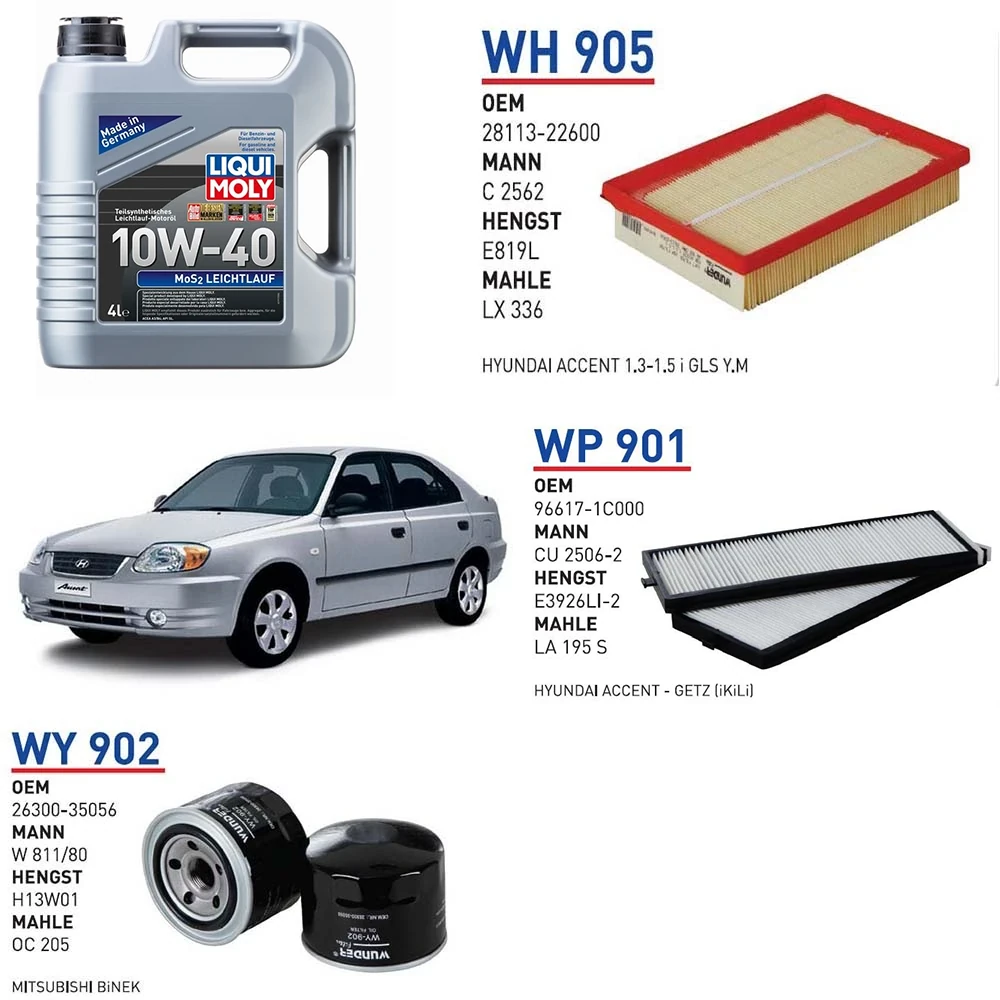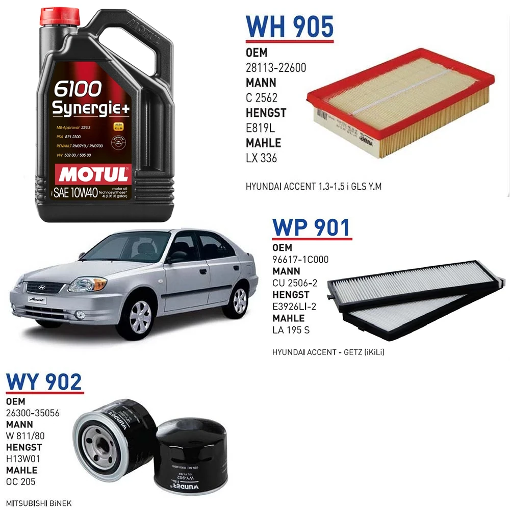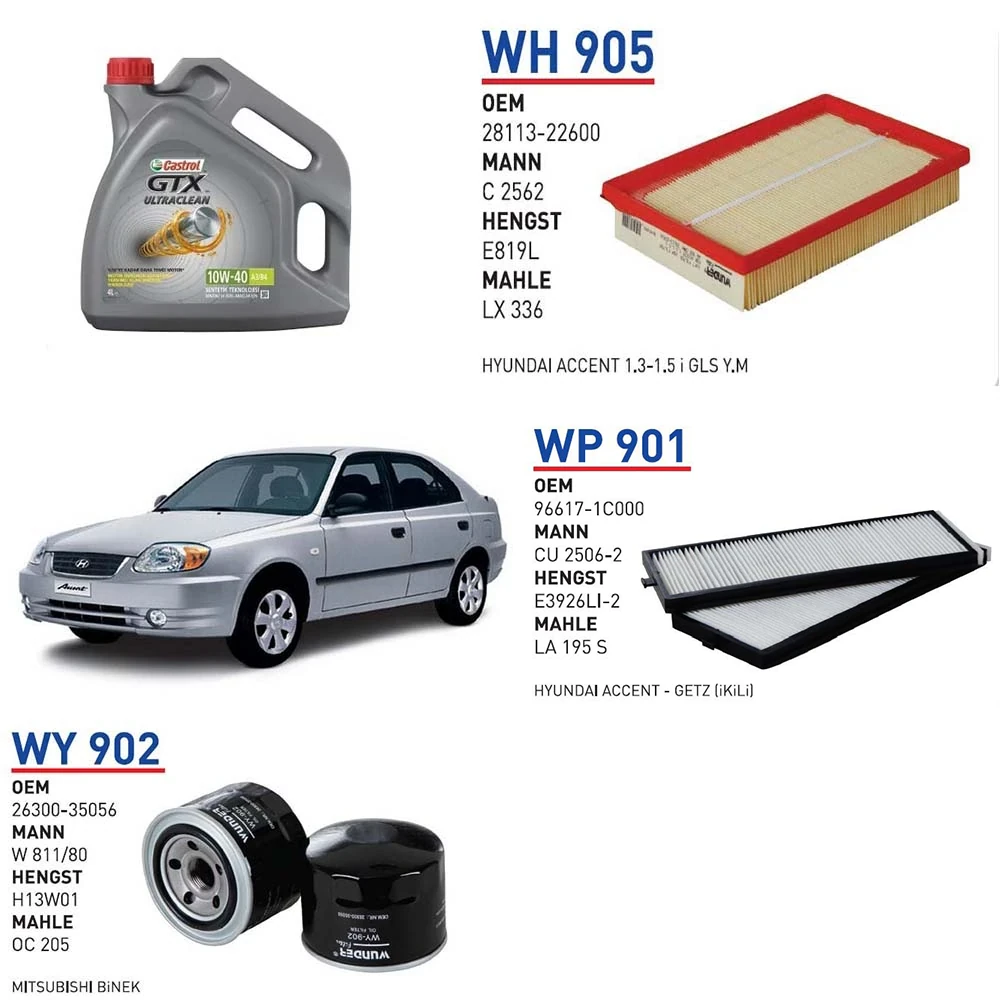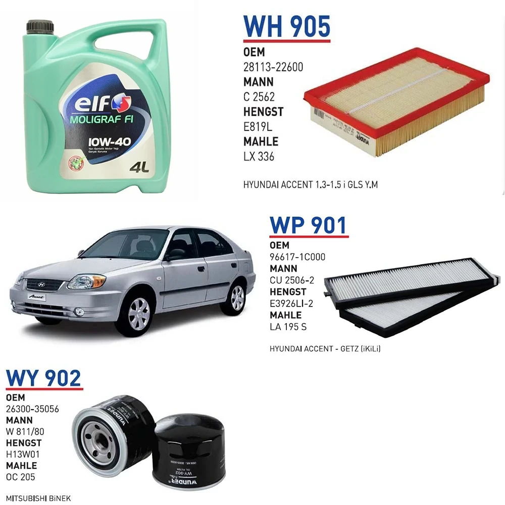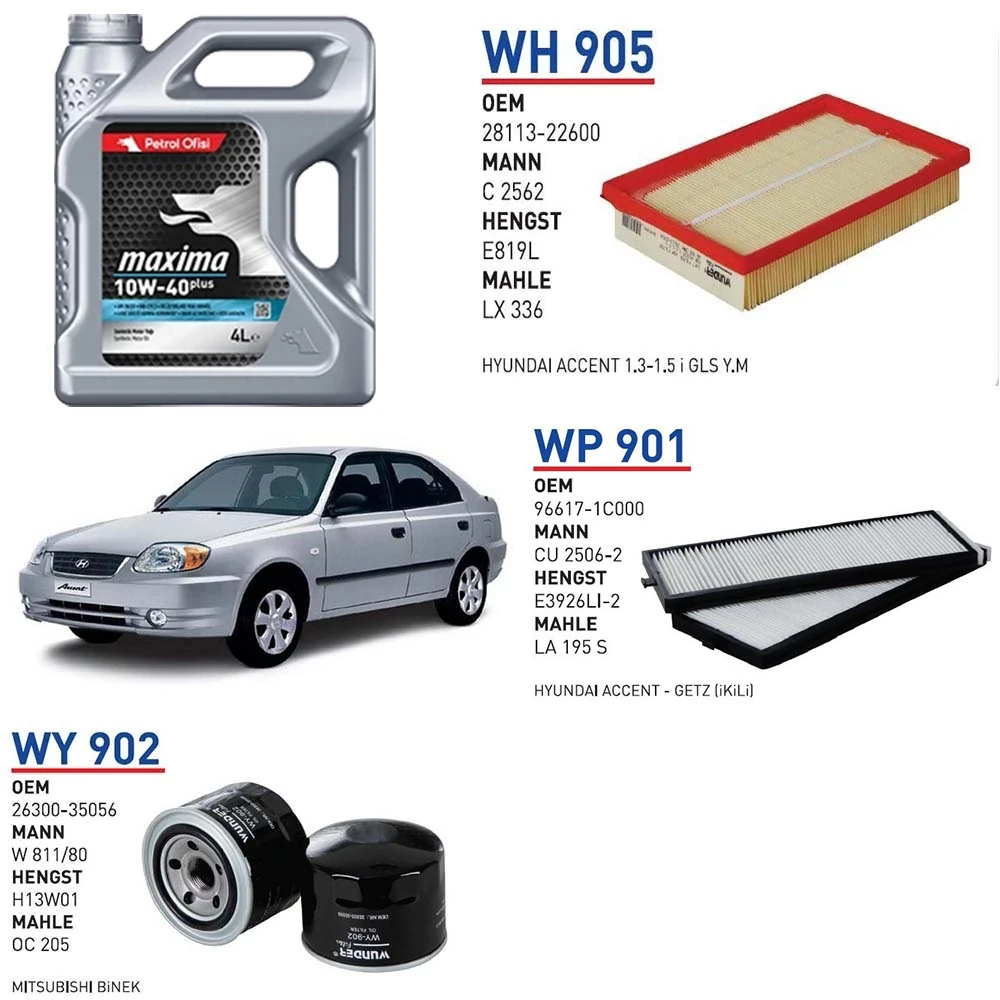 HYUNDAİ ACCENT 1.3 ADMİRE G4AE MOTOR KODU 63KW 86 HP ARAÇ BAKIM SETİ
