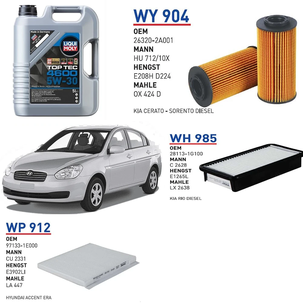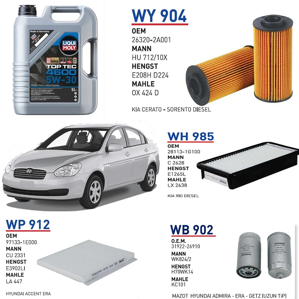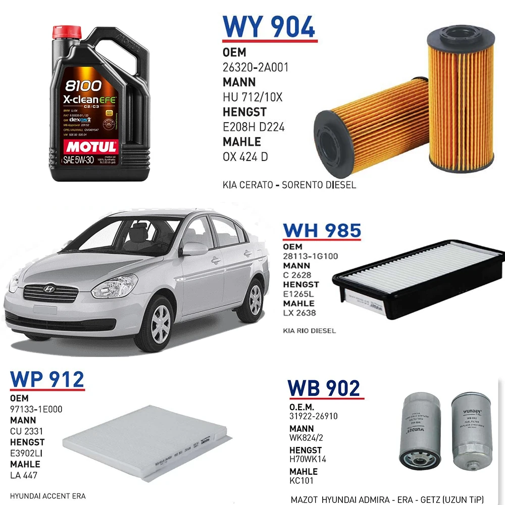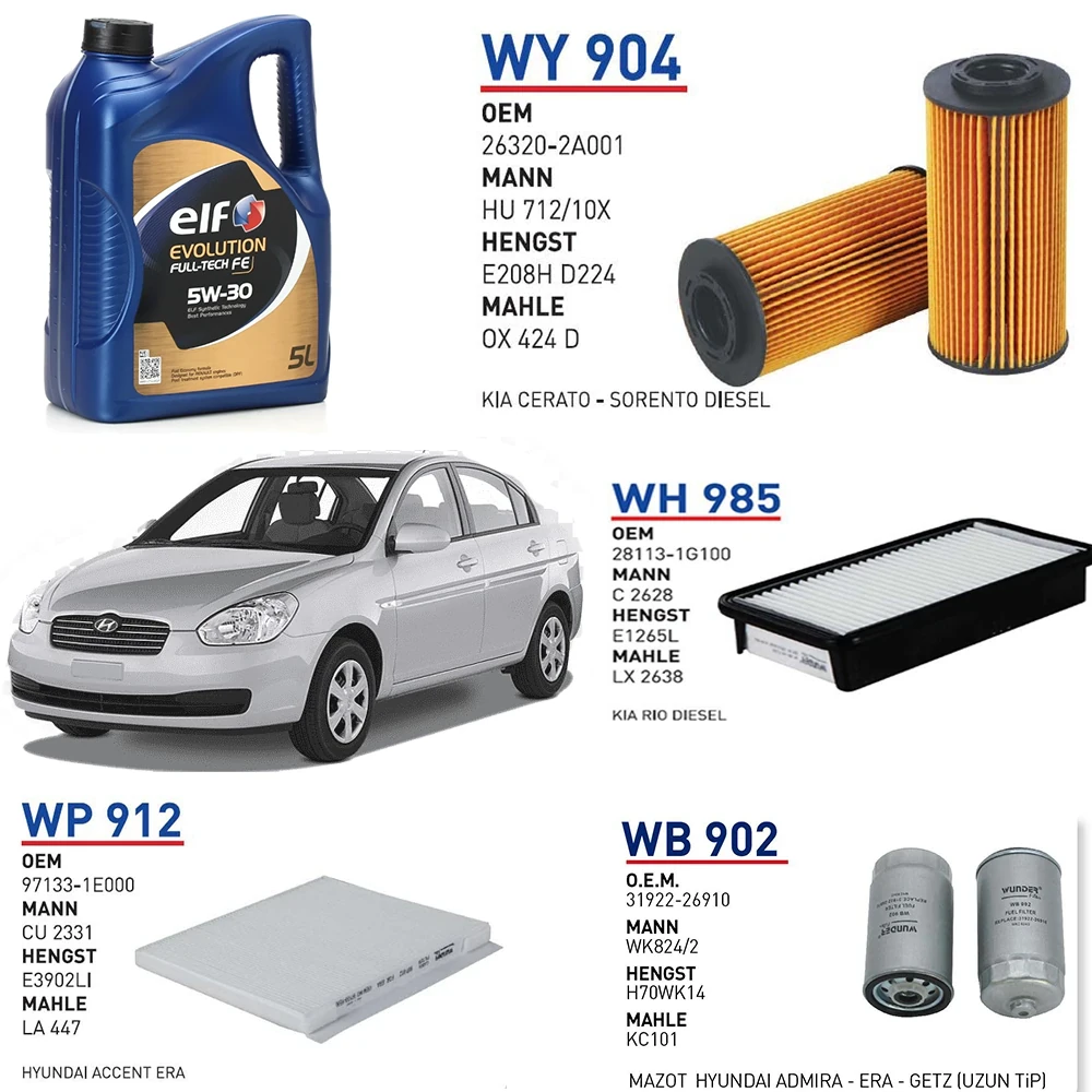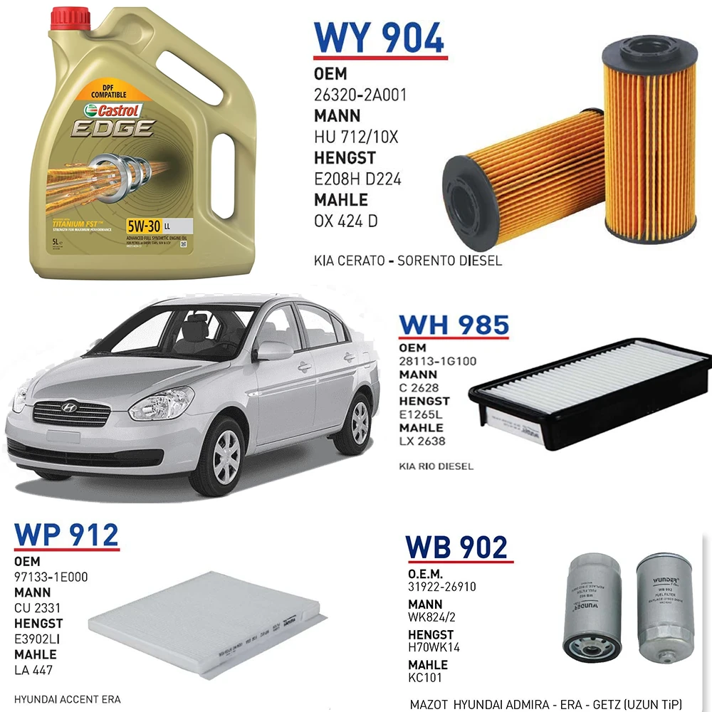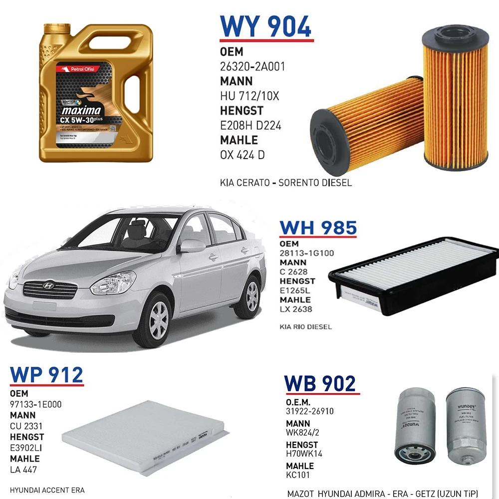 HYUNDAİ ACCENT ERA 1.5 CRDİ 110 HP MOTOR KODU:D4FA 2005-2010 YAĞ BAKIM SETİ