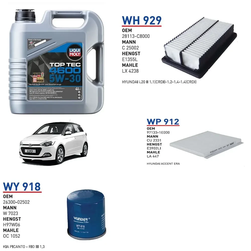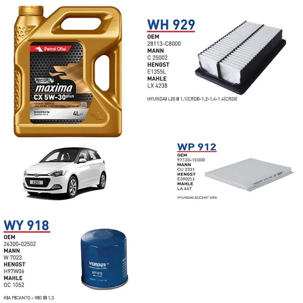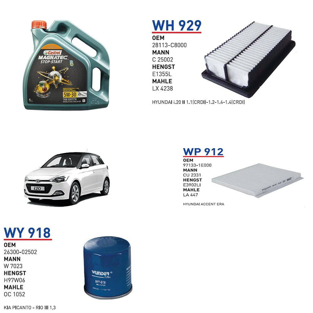 HYUNDAİ İ20 1.2 BENZİN MOTOR KOD G4LA 2014 ÜSTÜ YAĞ BAKIM SETİ