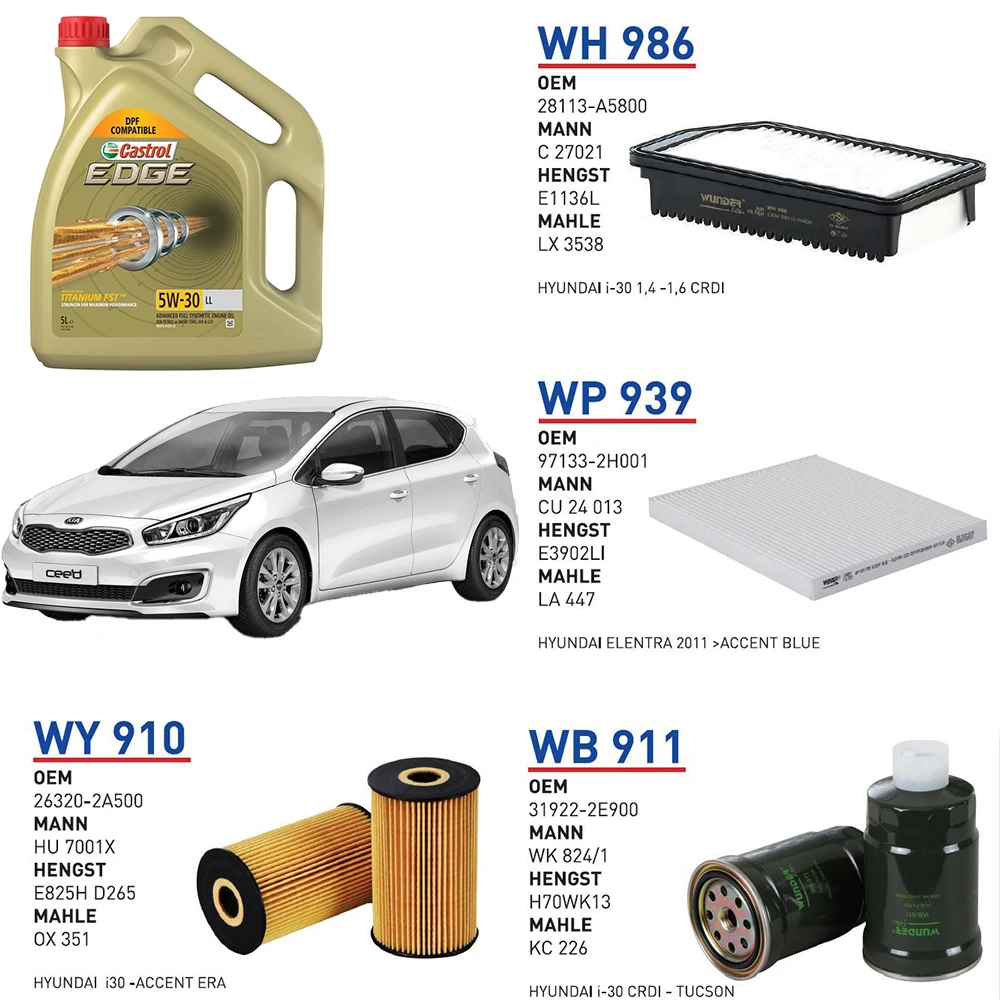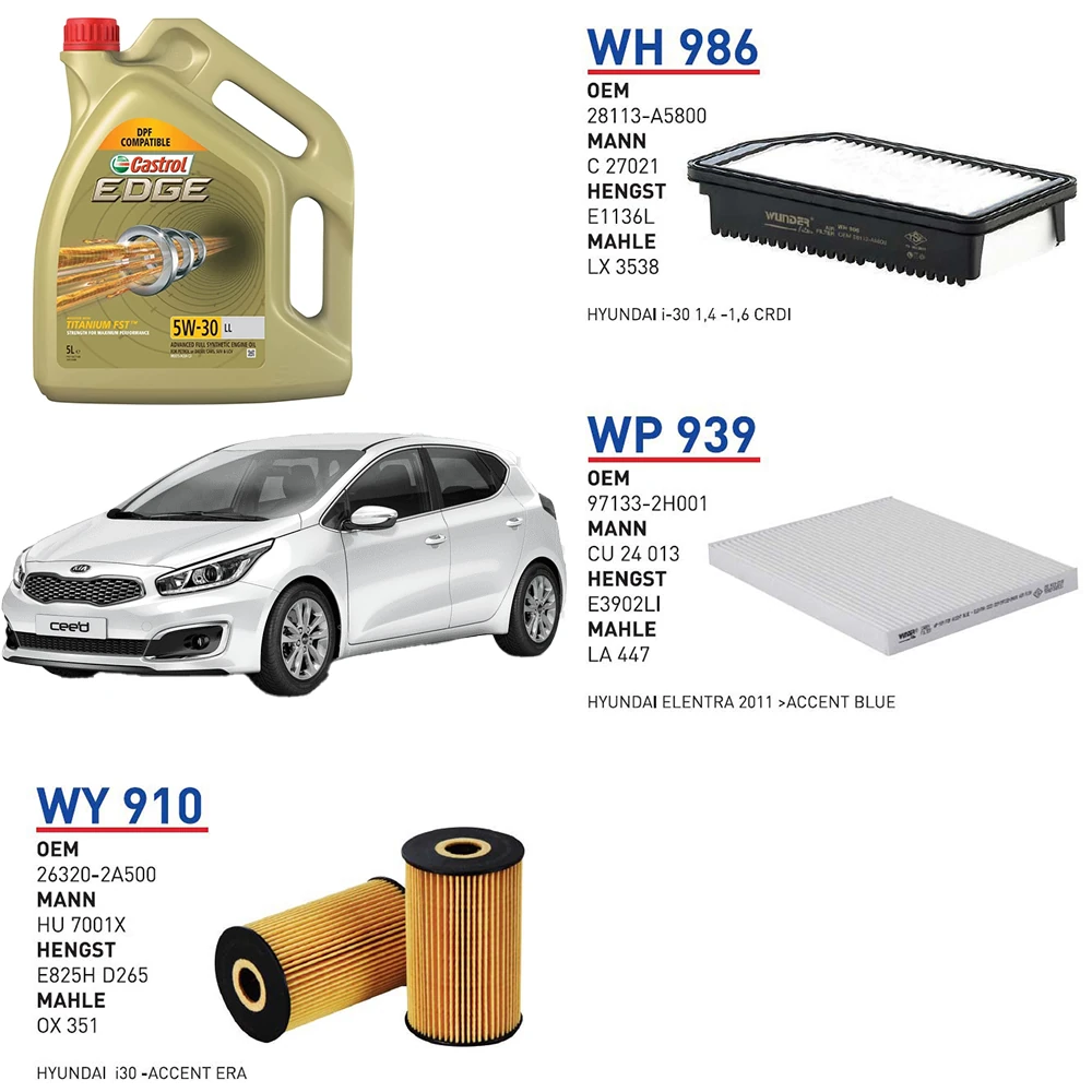 Kia Ceed 1.6 Crdi 94 KW 128 Hp 2012 ve Üstü Yağ bakım Seti