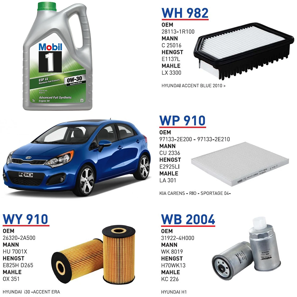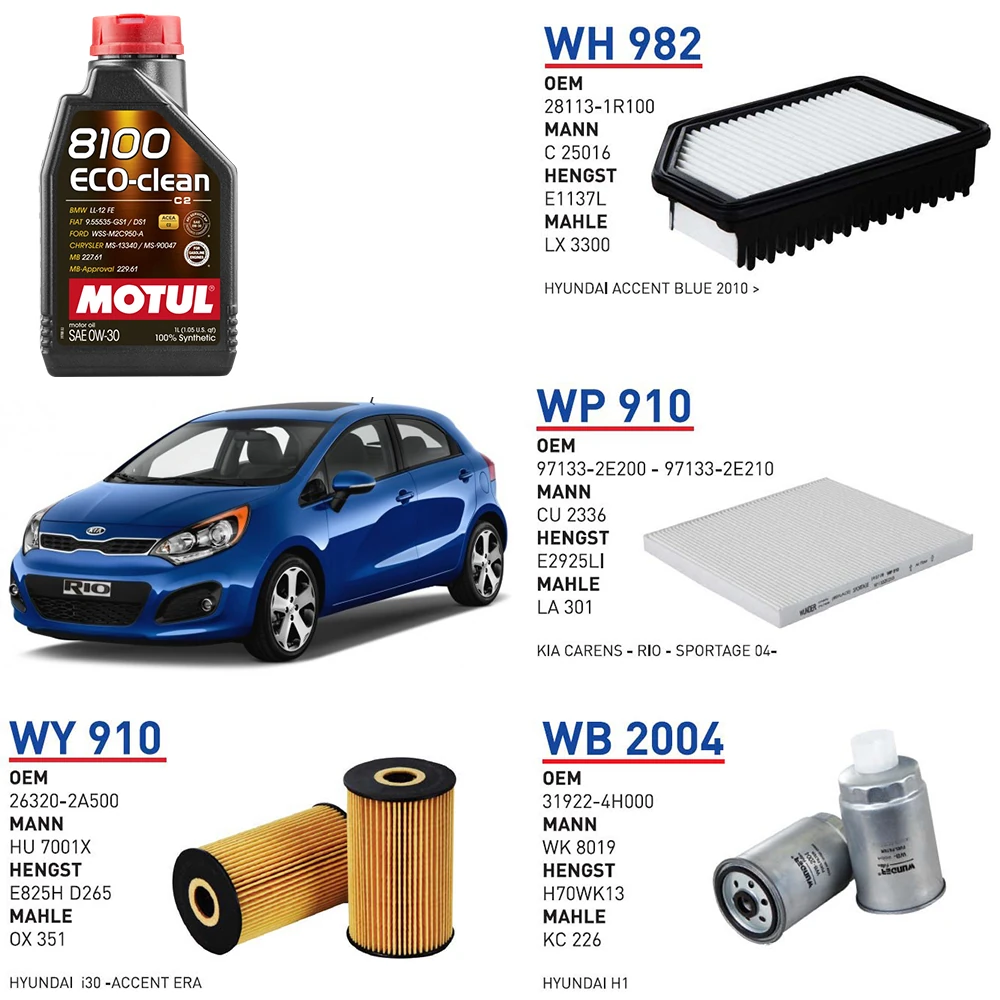 Kia Rio 1.4 Crdi 90 HP 09/11 → 12/17 Yağ Bakım Seti