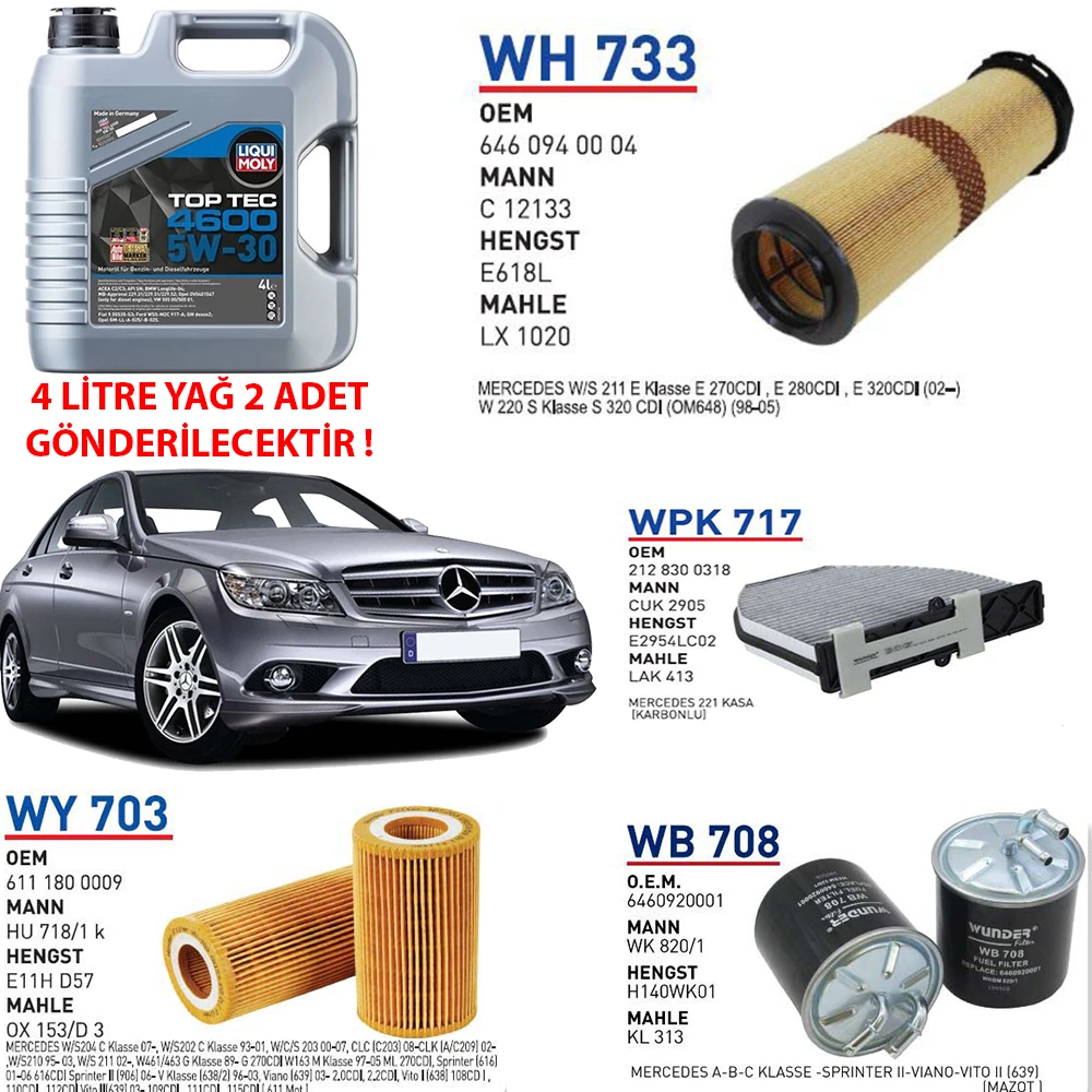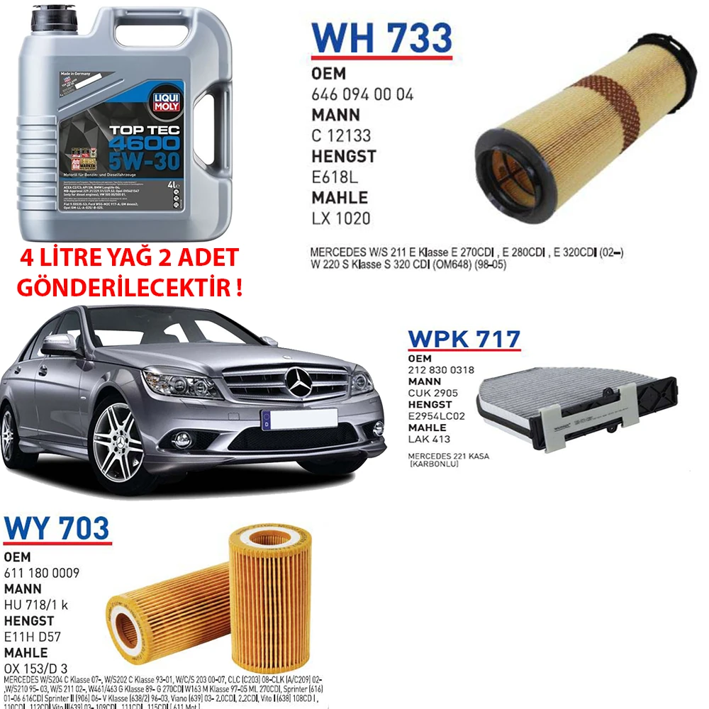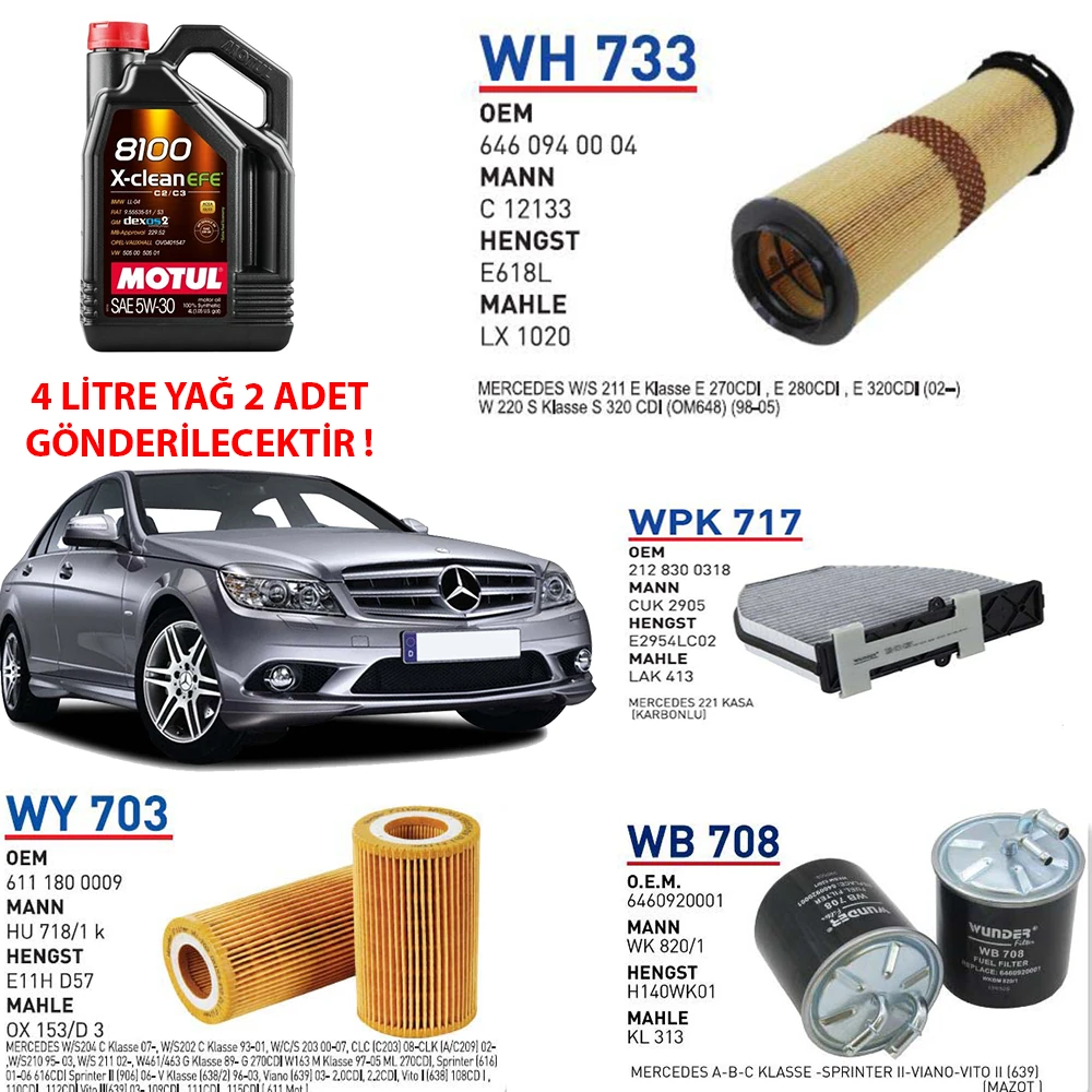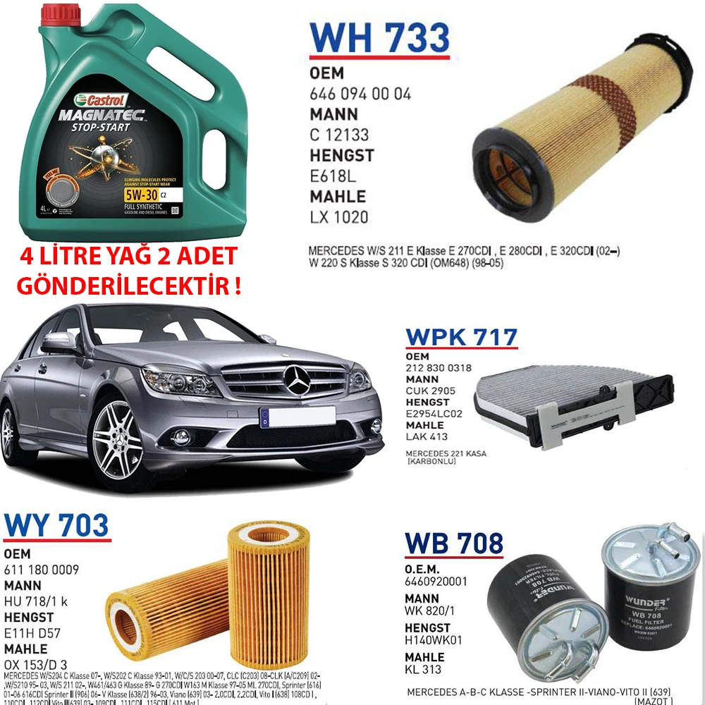 MERCEDES C220 CDI 125 KW 170 HP MOTOR KODU:OM 646.811 YAĞ BAKIM SETİ