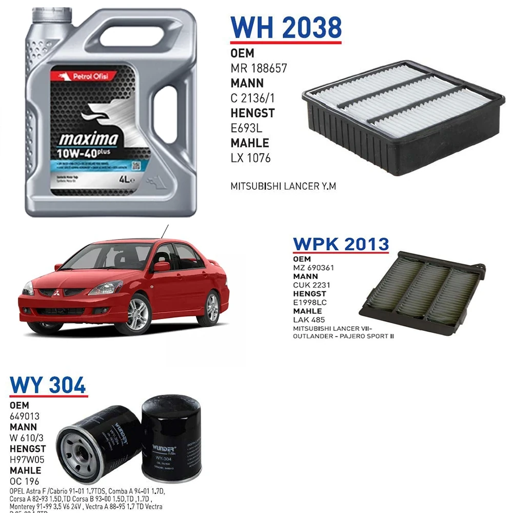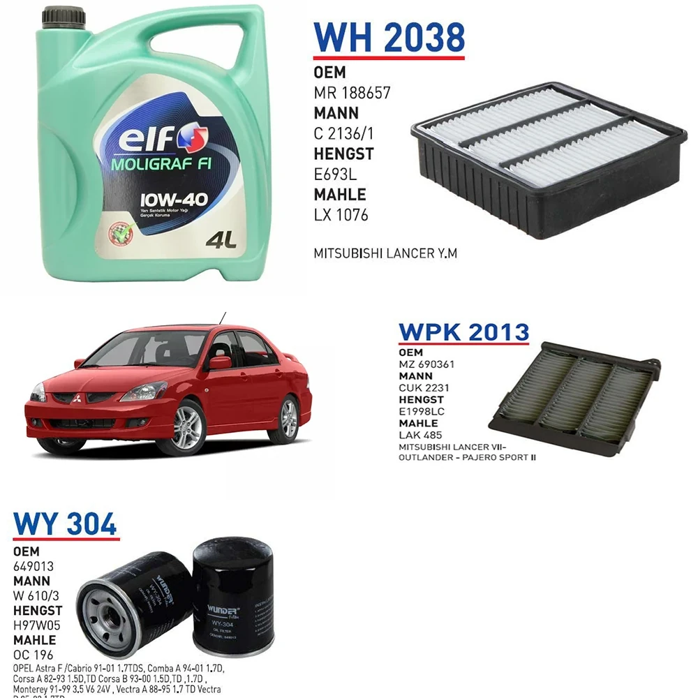 MİTSUBİSHİ LANCER 1.6 MOTOR KODU:4G18 09/03 → 10/08 YAĞ BAKIM SETİ