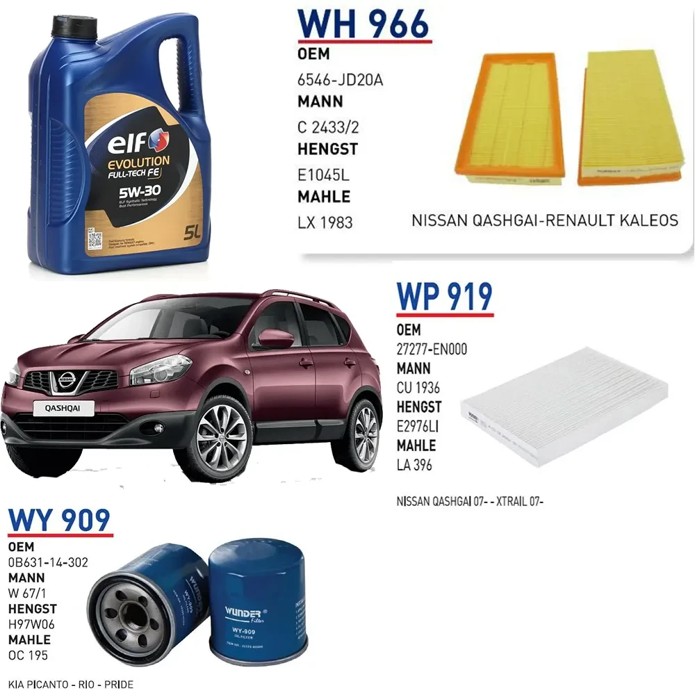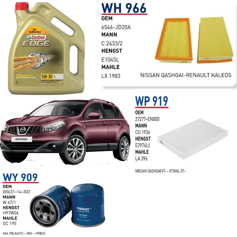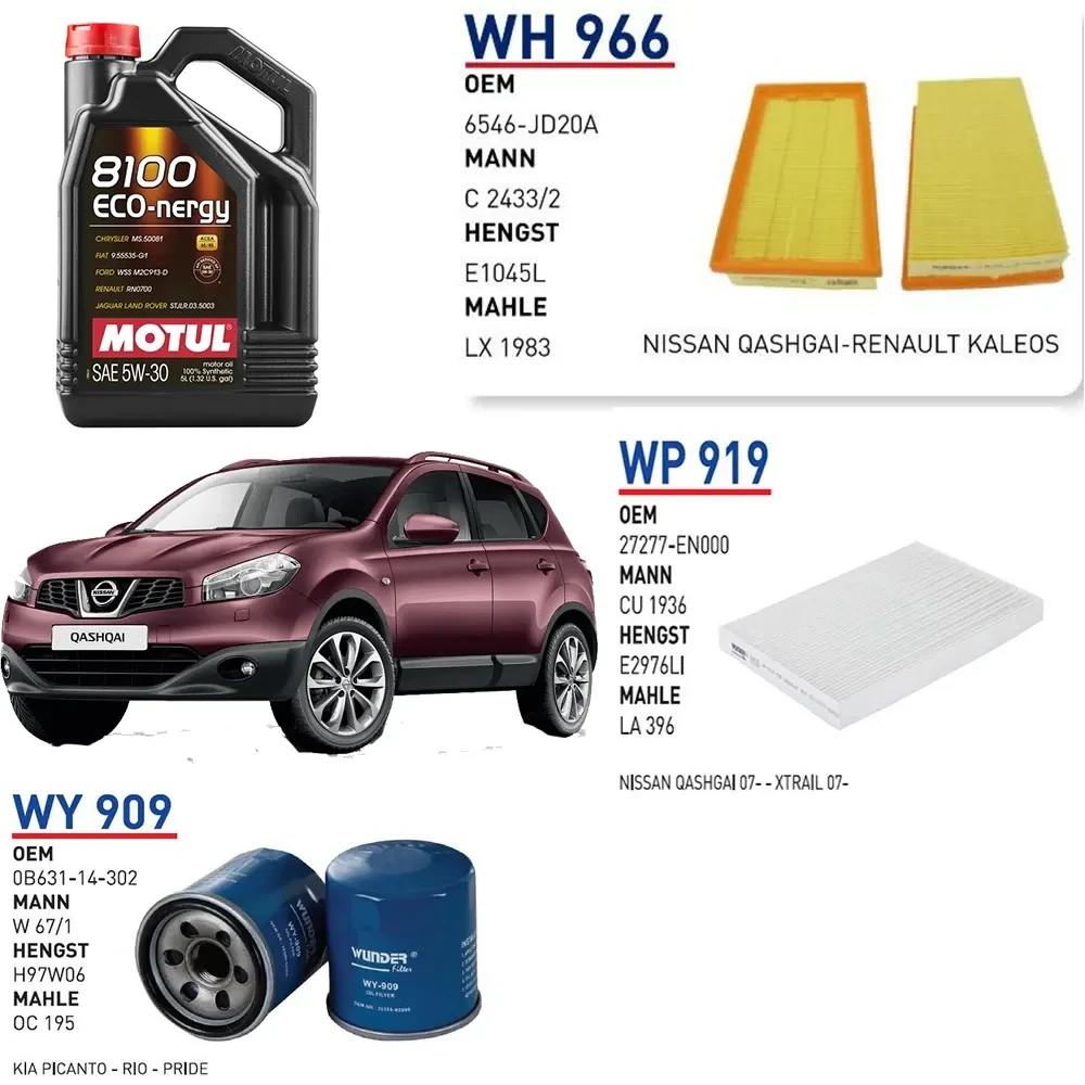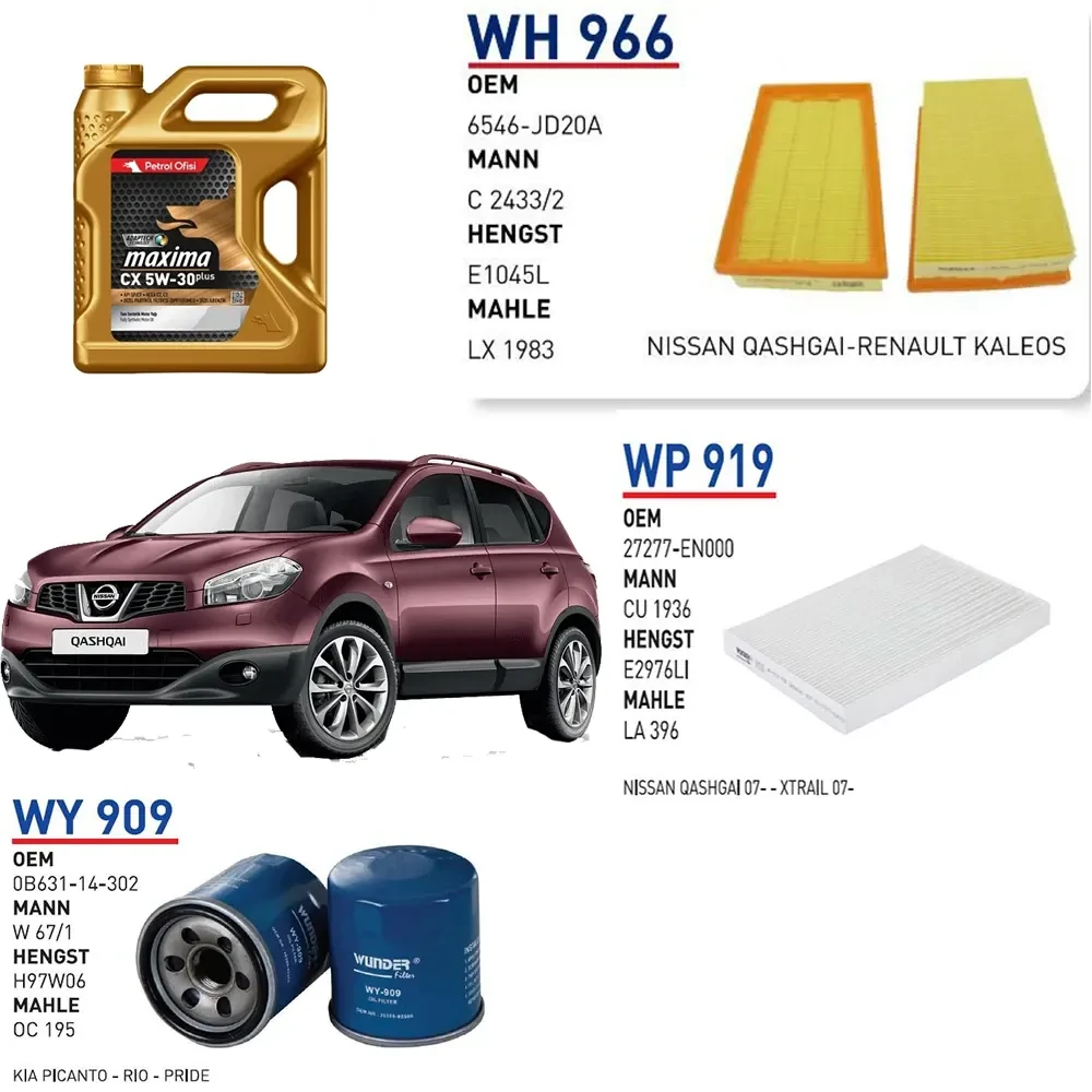 NİSSAN QASHQAİ 1.6 MOTOR 02/07 → 12/13 84 KW 114HP YAĞ BAKIM SETİ