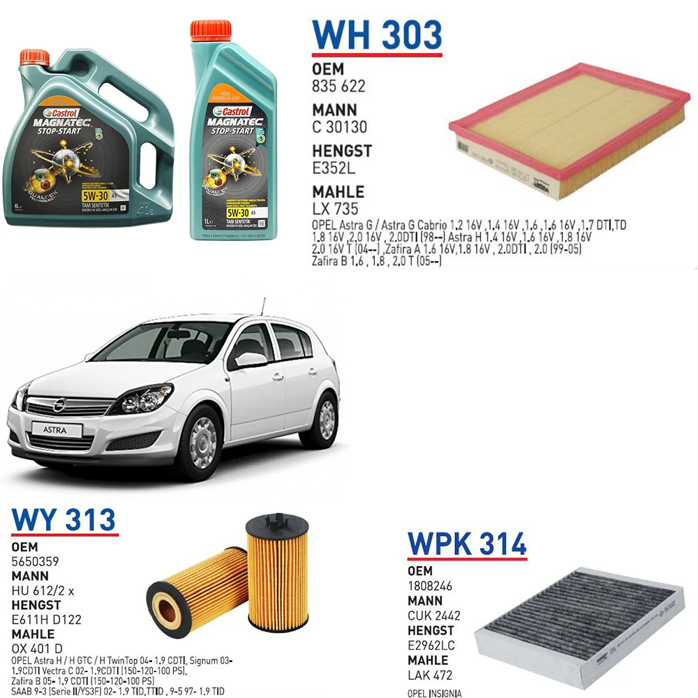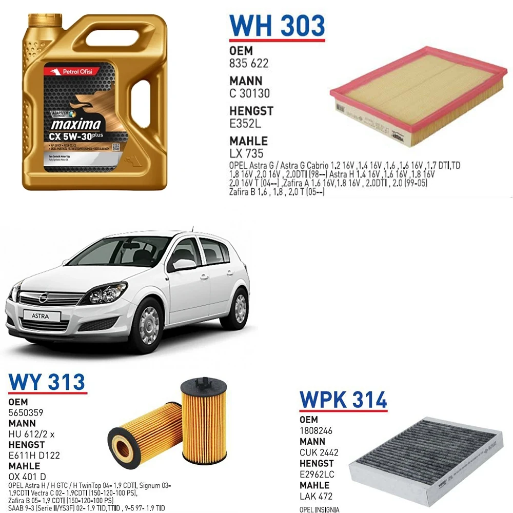 OPEL ASTRA H KASA 1.6 BENZİNLİ 2007-2013 BAKIM SETİ