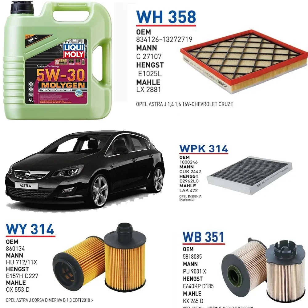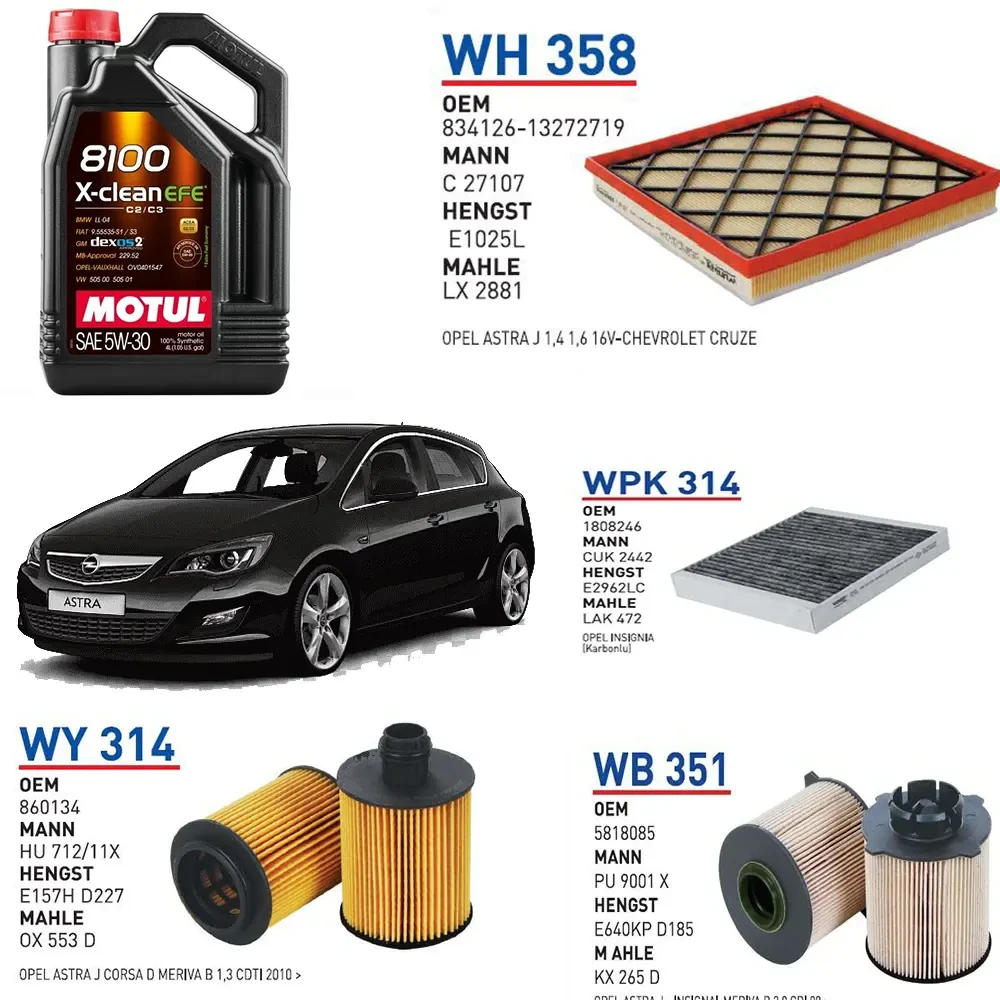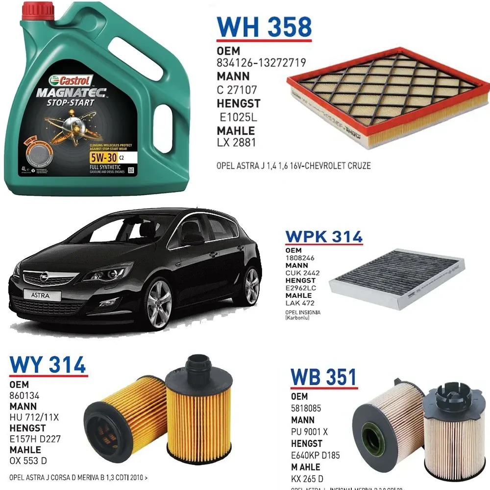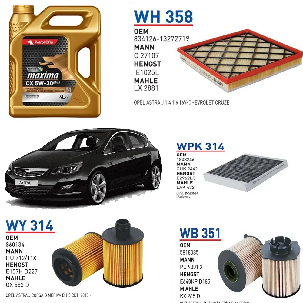 OPEL ASTRA J 1.3 CDTİ 95 HP MOTOR KOD A13DTE YAĞ BAKIM SETİ
