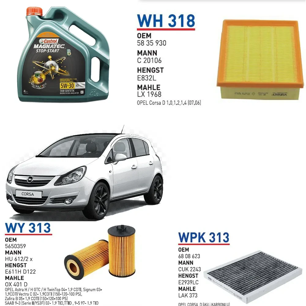 OPEL CORSA D 1.2 85 HP MOTOR YAĞ BAKIM SETİ