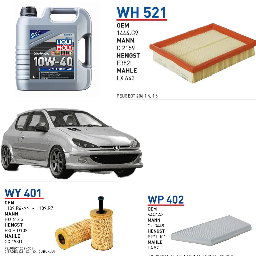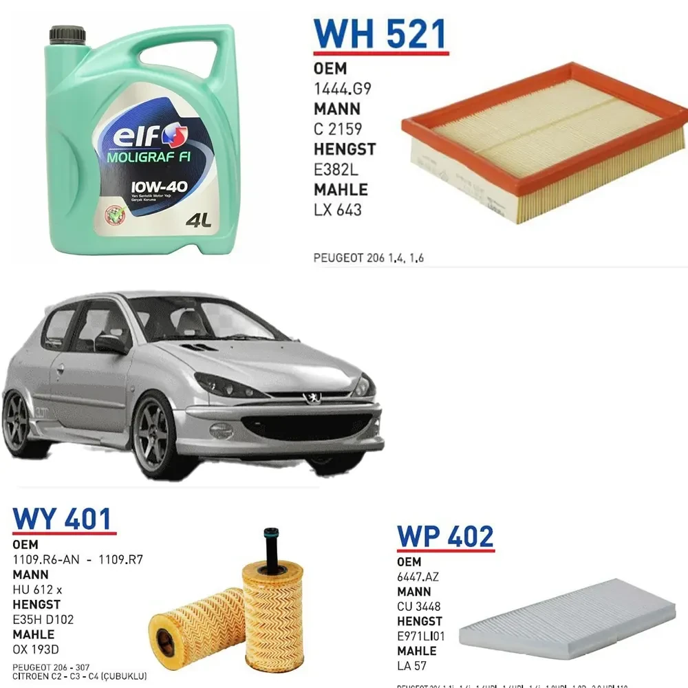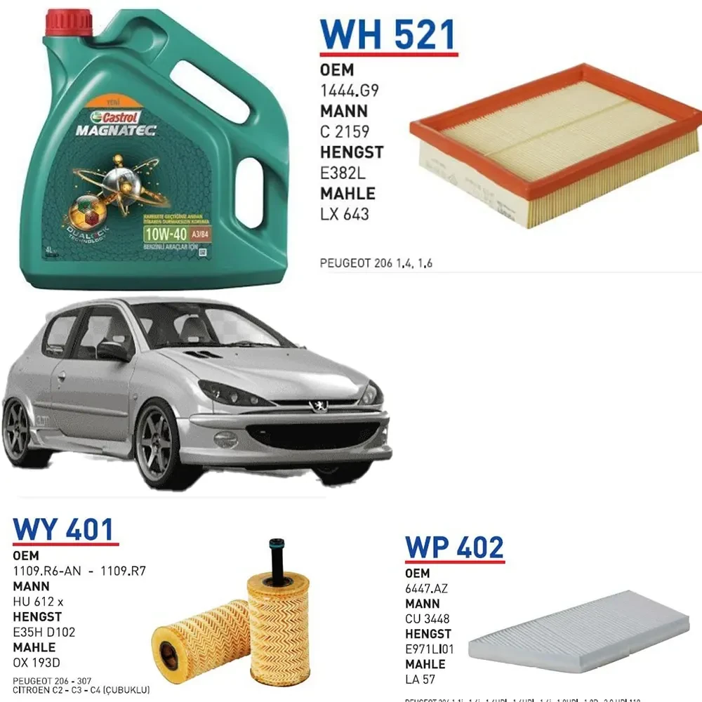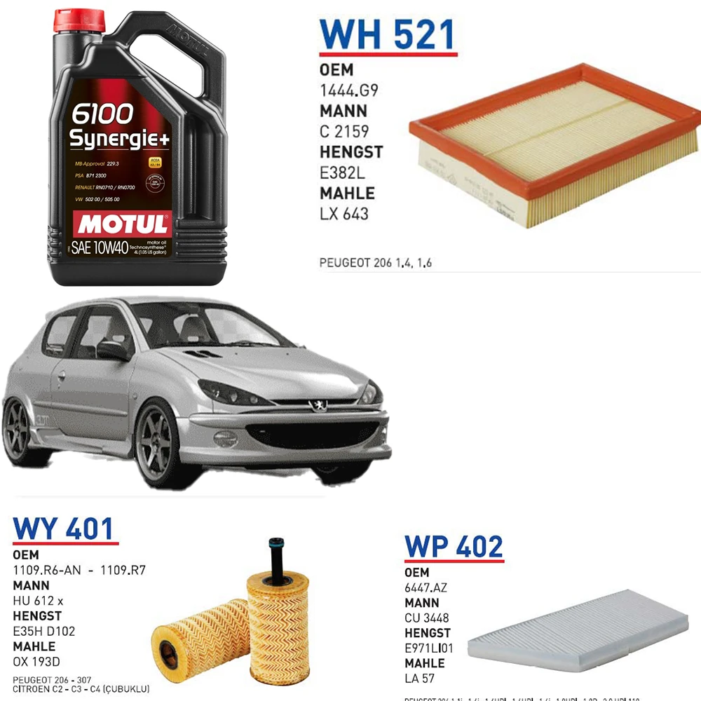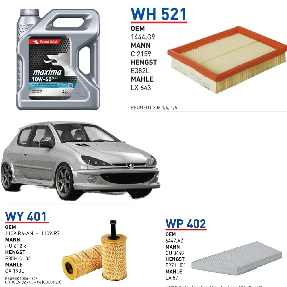PEUGEOT 206 1.6i MOTOR KODU NFZ (TU5JP) 66KW 90HP YAĞ BAKIM SETİ