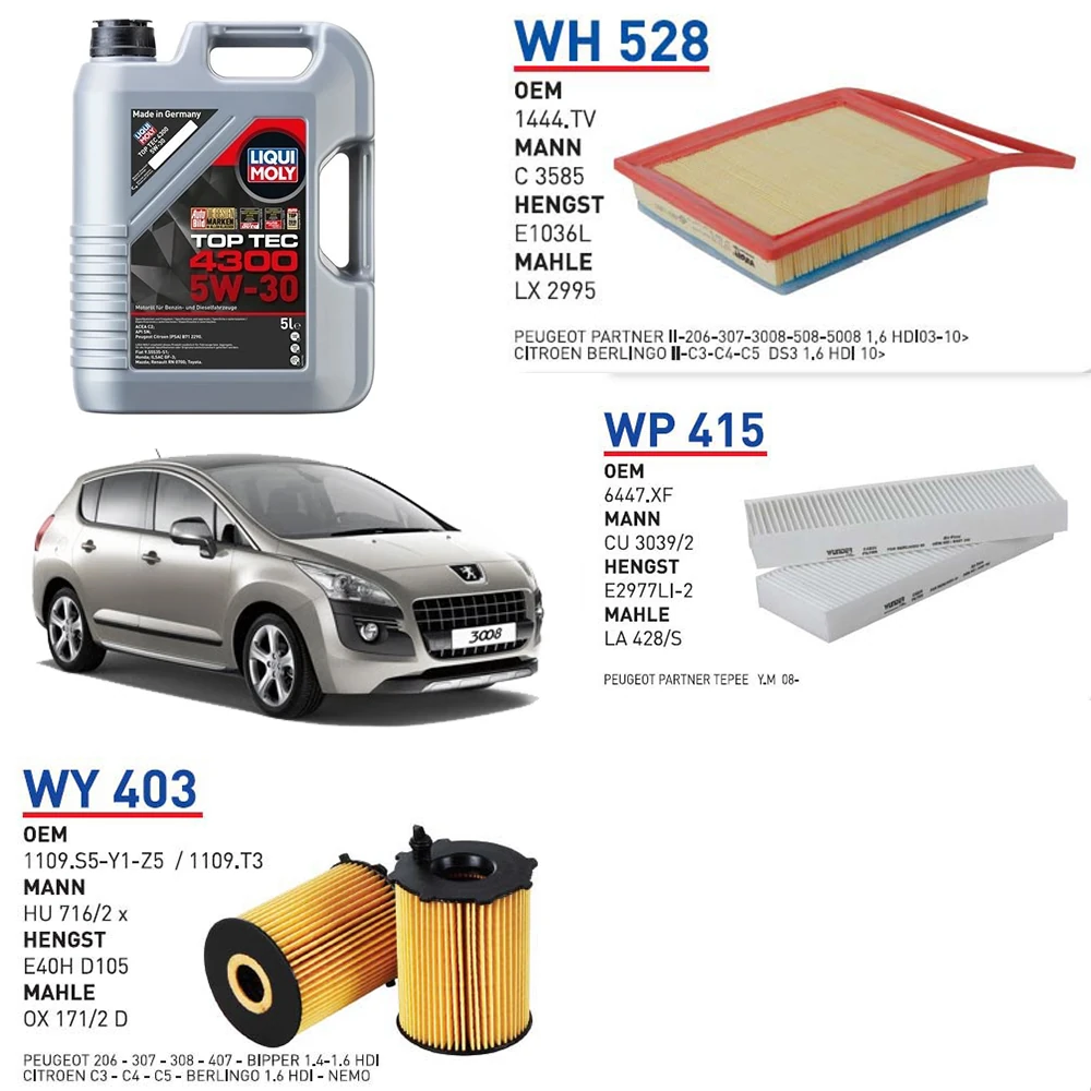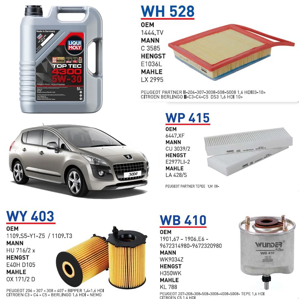 PEUGEOT 3008 1.6 HDİ 82 KW 112 HP YAĞ BAKIM SETİ