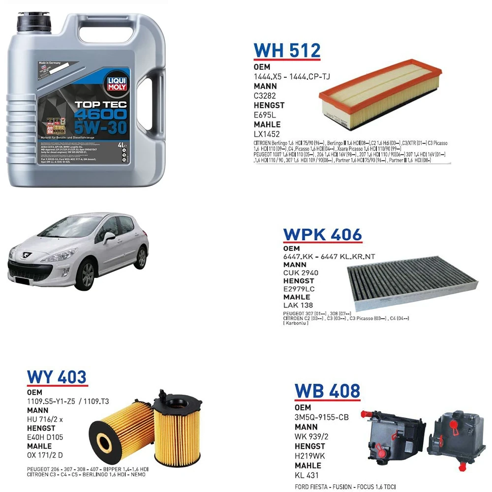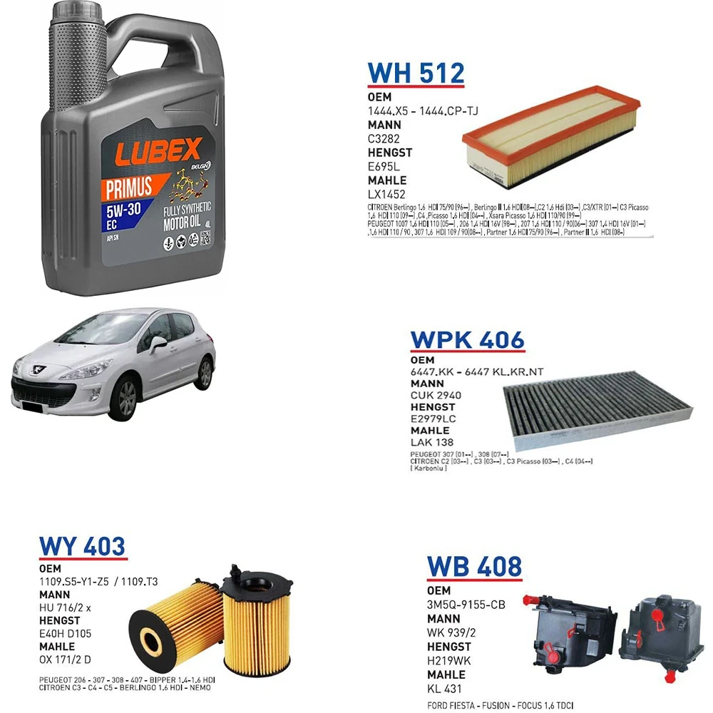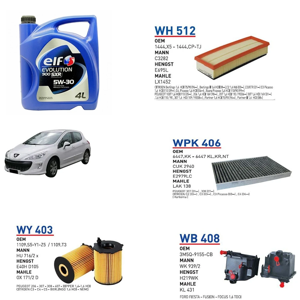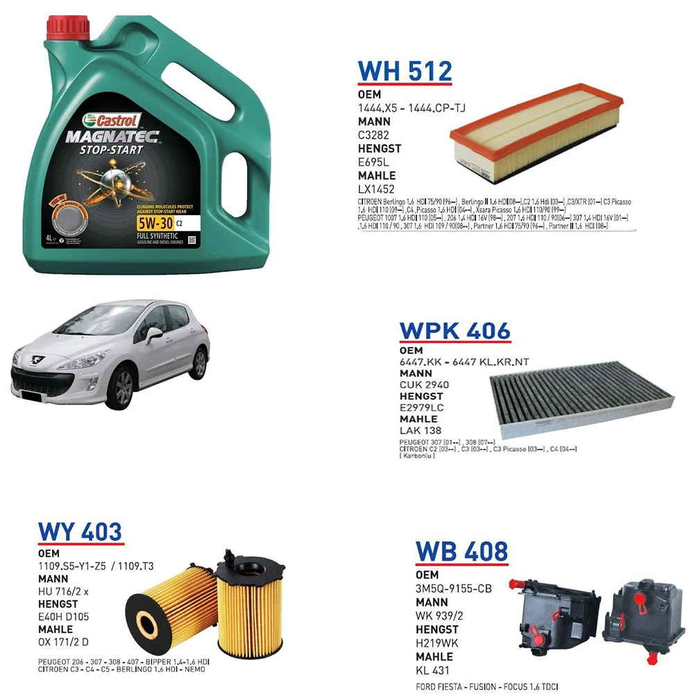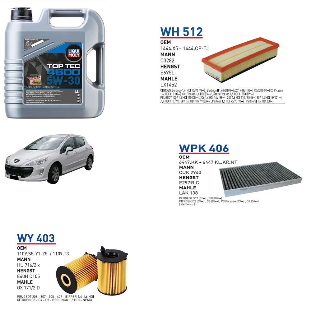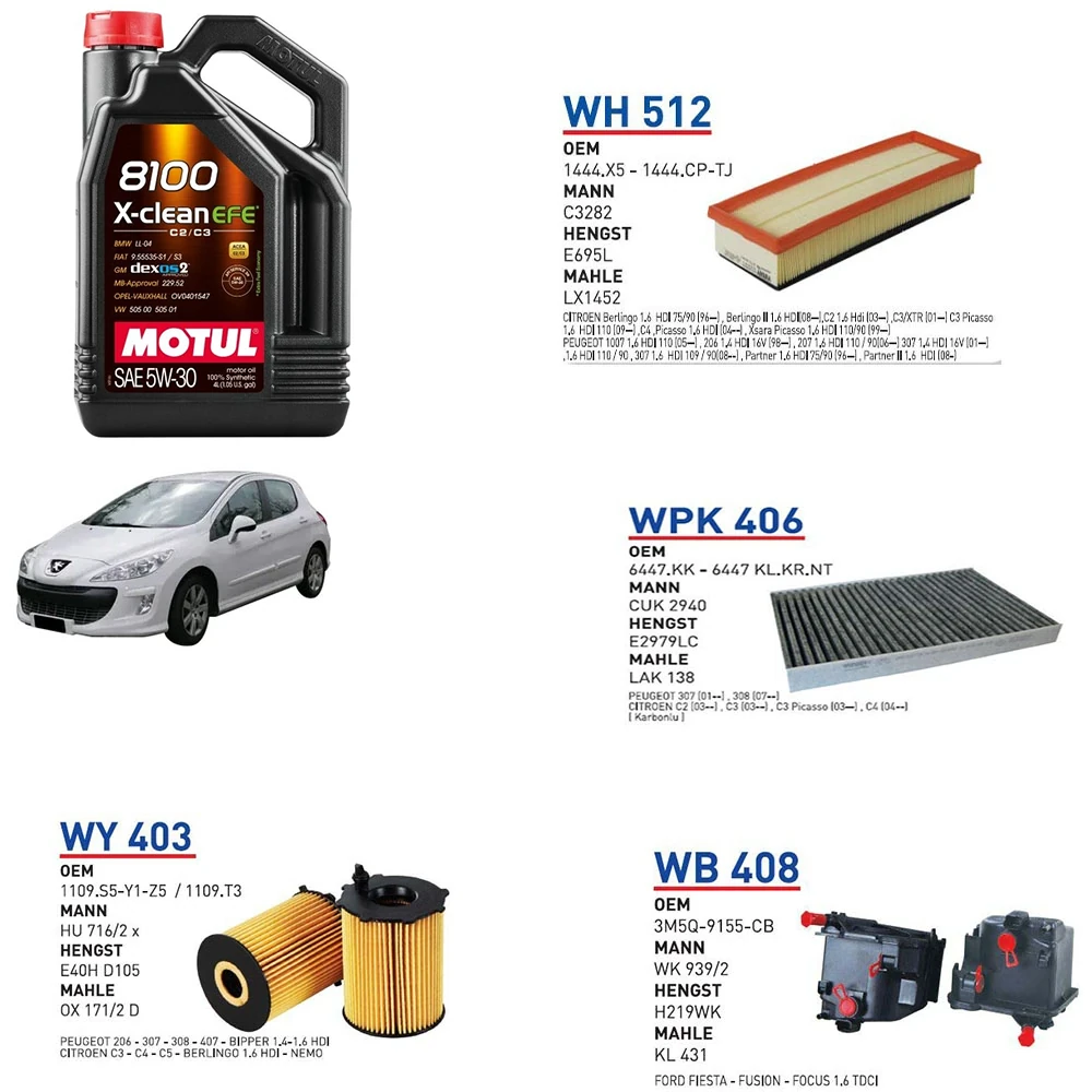 PEUGEOT 308 1.6 HDI 110 HP MOTOR 09/07 → 02/10 MODEL YAĞ BAKIM SETİ