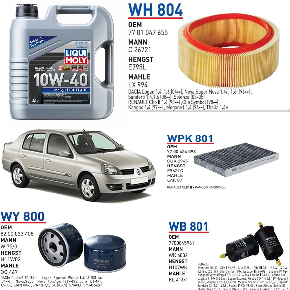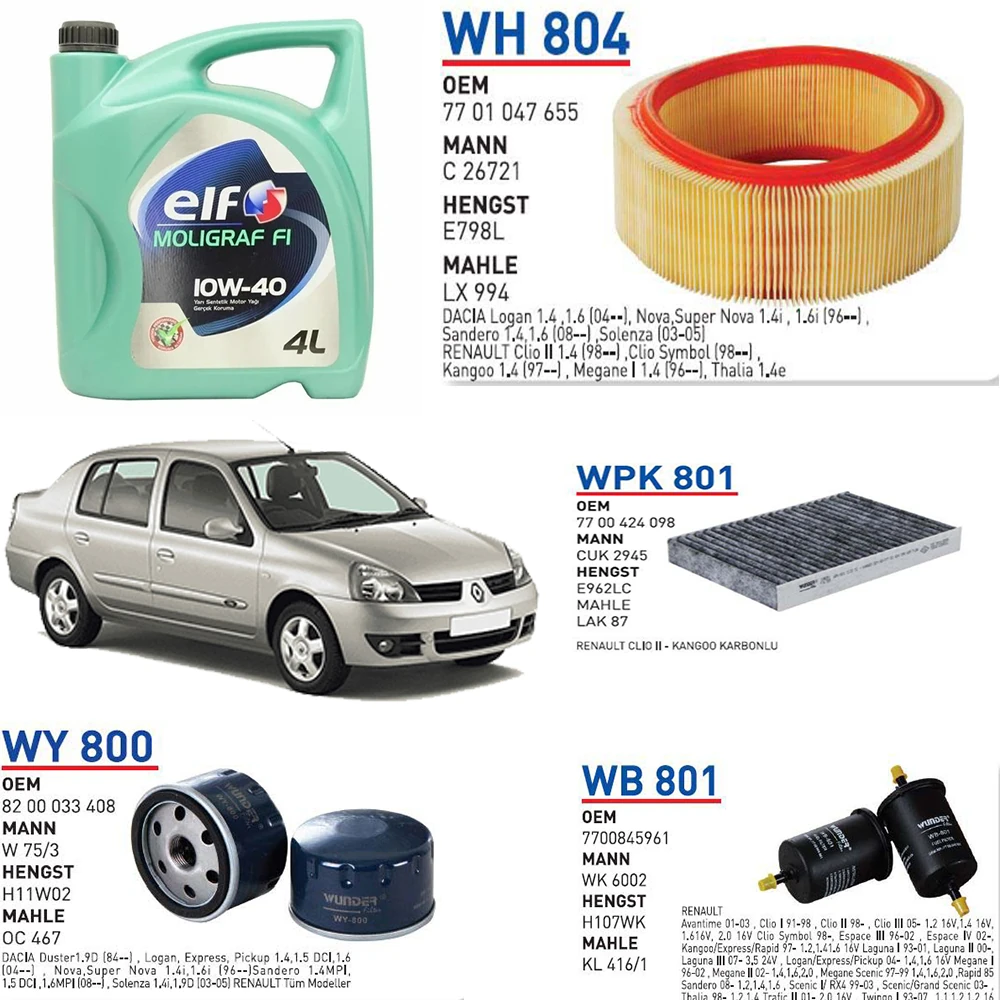 RENAULT CLIO 1 1.4 8 VALF MOTOR ARAÇ BAKIM SETİ