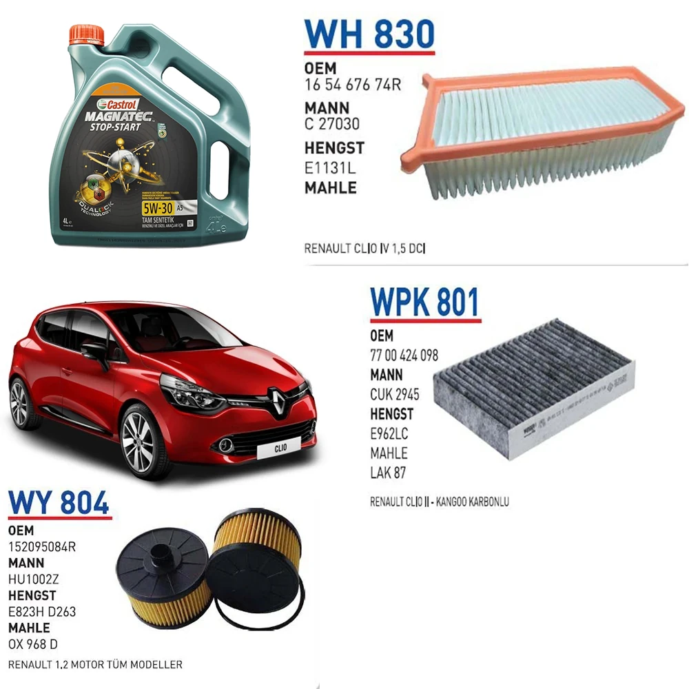 RENAULT CLİO 4 0.9 TCE 66KW MOTOR KODU:H4B400 90 HP MOTOR YAĞ BAKIM SETİ