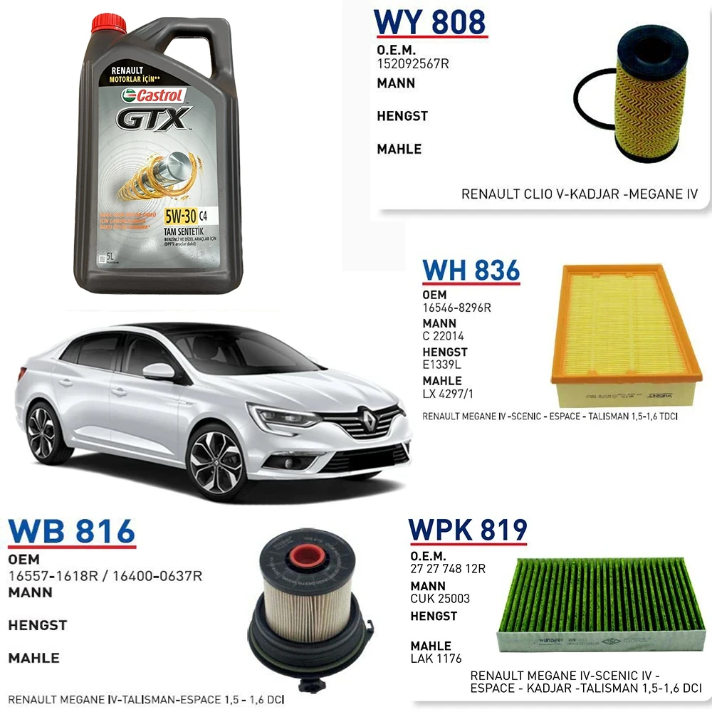 RENAULT MEGANE 4 1.5 Blue DCİ 115 HP MOTOR YAĞ BAKIM SETİ