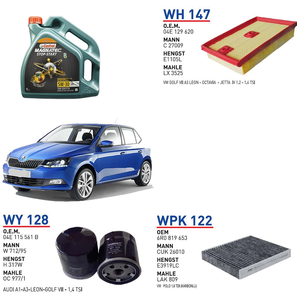 SKODA Fabia III (NJ3, NJ5) 1.2 TSI (NJ3, NJ5) - kw 81 - 110 hp Yağ Bakım Seti