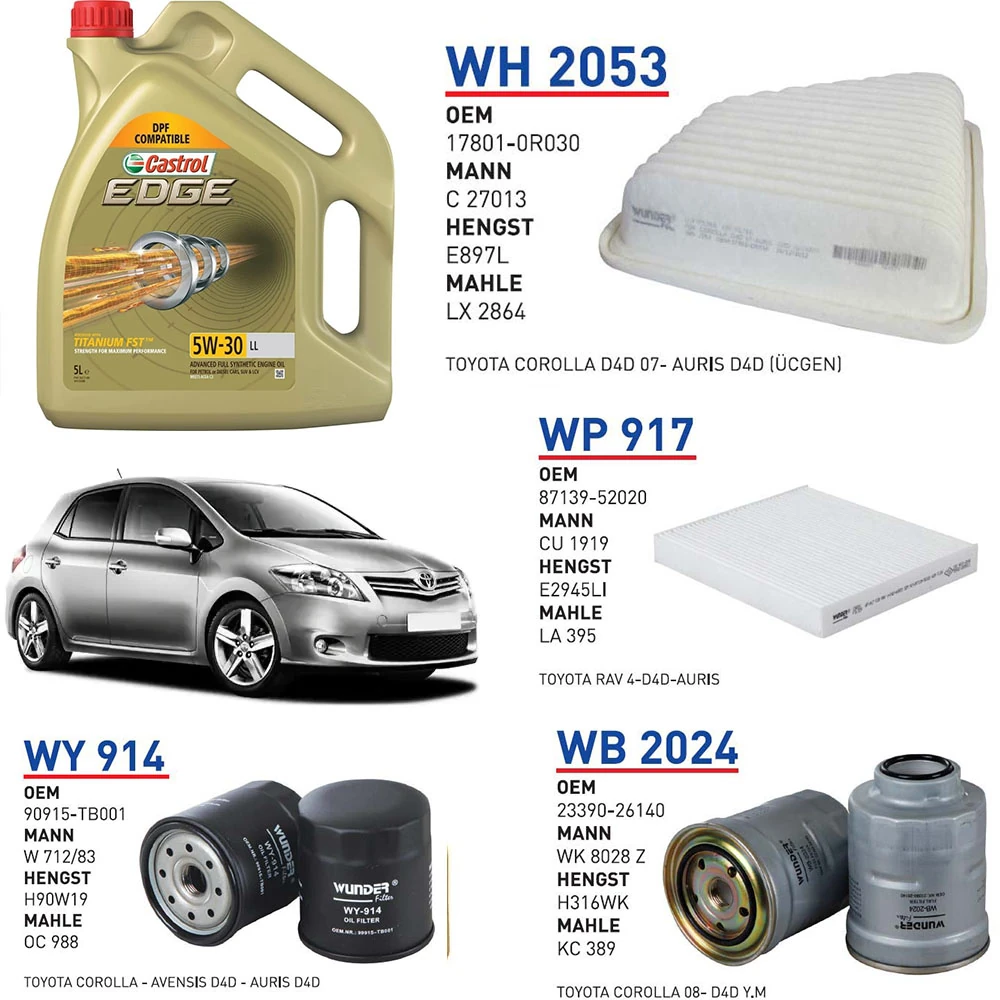 TOYOTA Auris I (E150) - Corolla 1.4 D-4D - kw 66 - 90 hp Yağ Bakım Seti