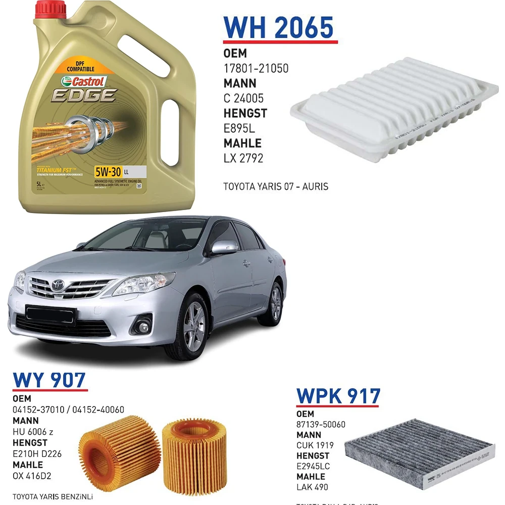 TOYOTA COROLLA 1.6 MOTOR KODU:1ZR-FAE 132 HP MOTOR 01/09 → 11/13 YAĞ BAKIM SETİ