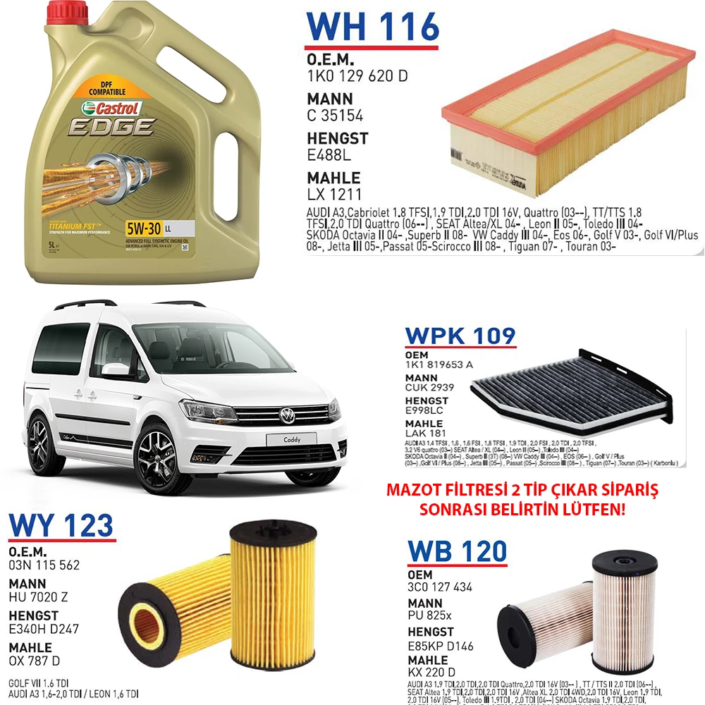 VOLKSWAGEN CADDY 2.0 TDİ 75KW 102 HP MOTOR YAĞ BAKIM SETİ