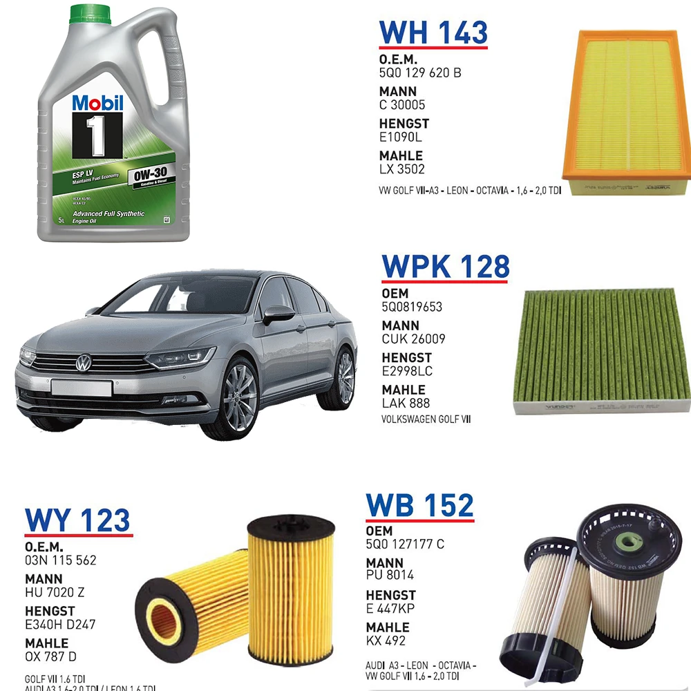 Volkswagen Passat B8 1.6 TDİ 120 HP 2014 ve Üstü Yağ Bakım Seti