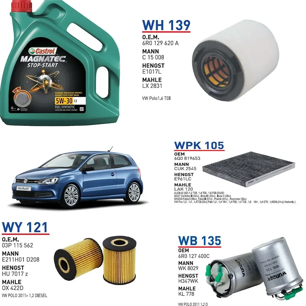 VOLKSWAGEN POLO BLUEMOTION 1.2 TDI 75 HP 2010-2014 ARASI ARAÇ BAKIM SETİ
